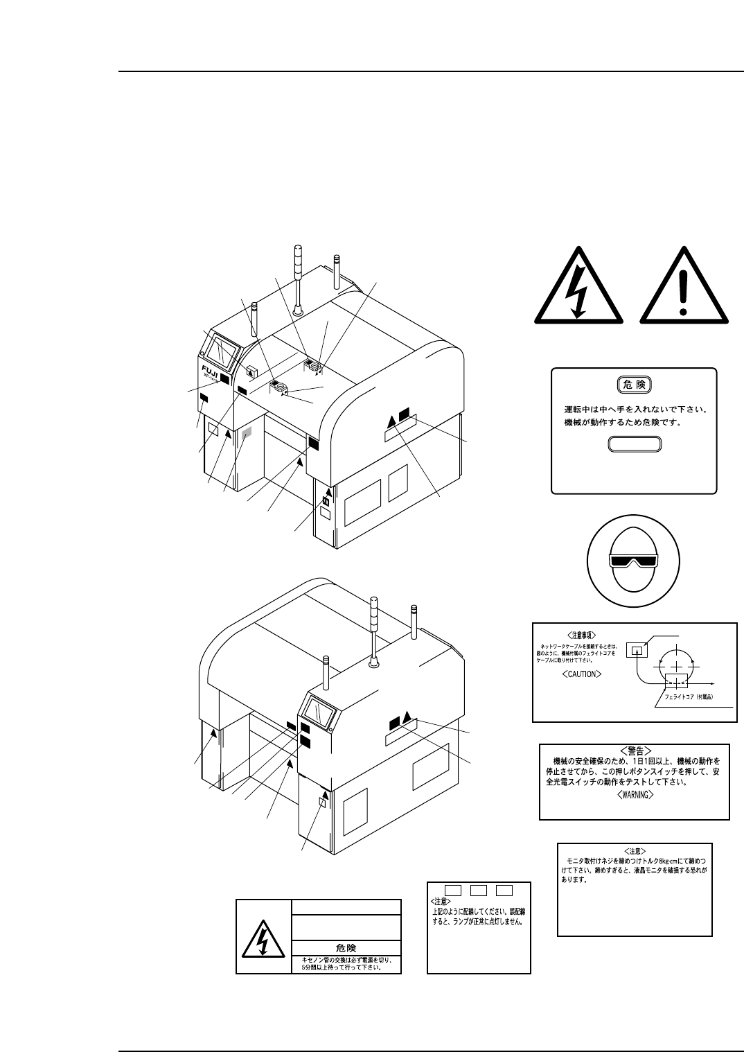 To warn the operator of hazards, safety labels are attached to the machine at the