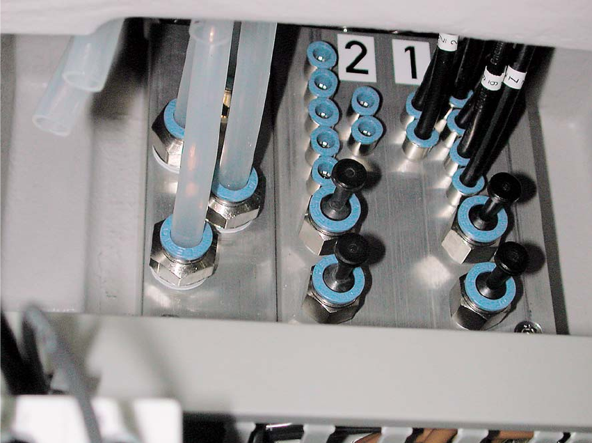 anschließend die Druckluftzuführung am Hauptventil der Drucklufteinheit im Maschinenständer