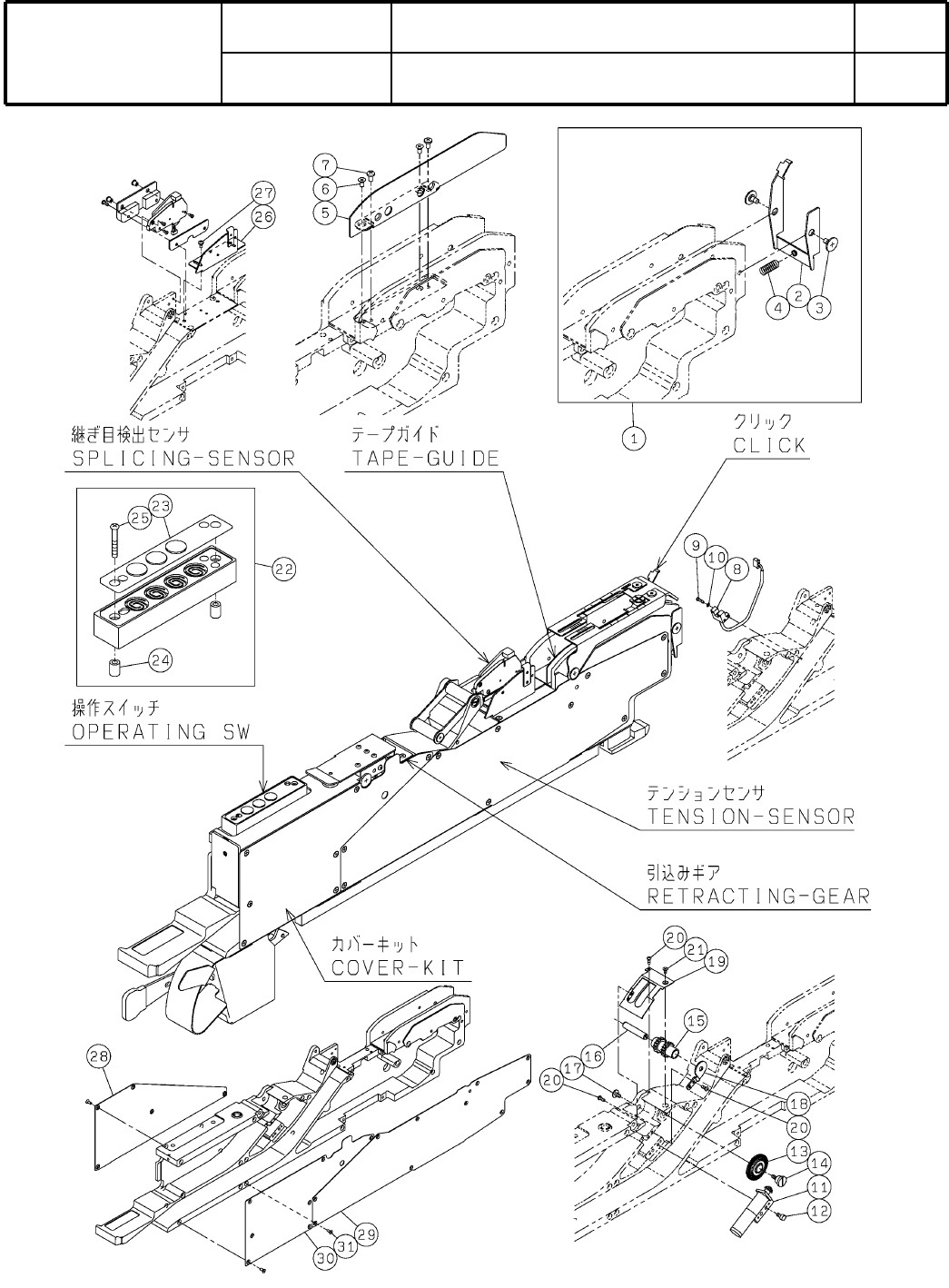 1-B T/F;24 ;32mm;継目検出;深さ26mm;タイプA Tape Feeder; 24; 32 mm; depth 26mm; Splice sens; Type A パーツレイアウト Kit No. キット品 番 Kit N am e キット名称 N610133537AA セクションN o. PARTS LAYOUT Section No. - - M3 ( KN610133537AA-07-2 )
