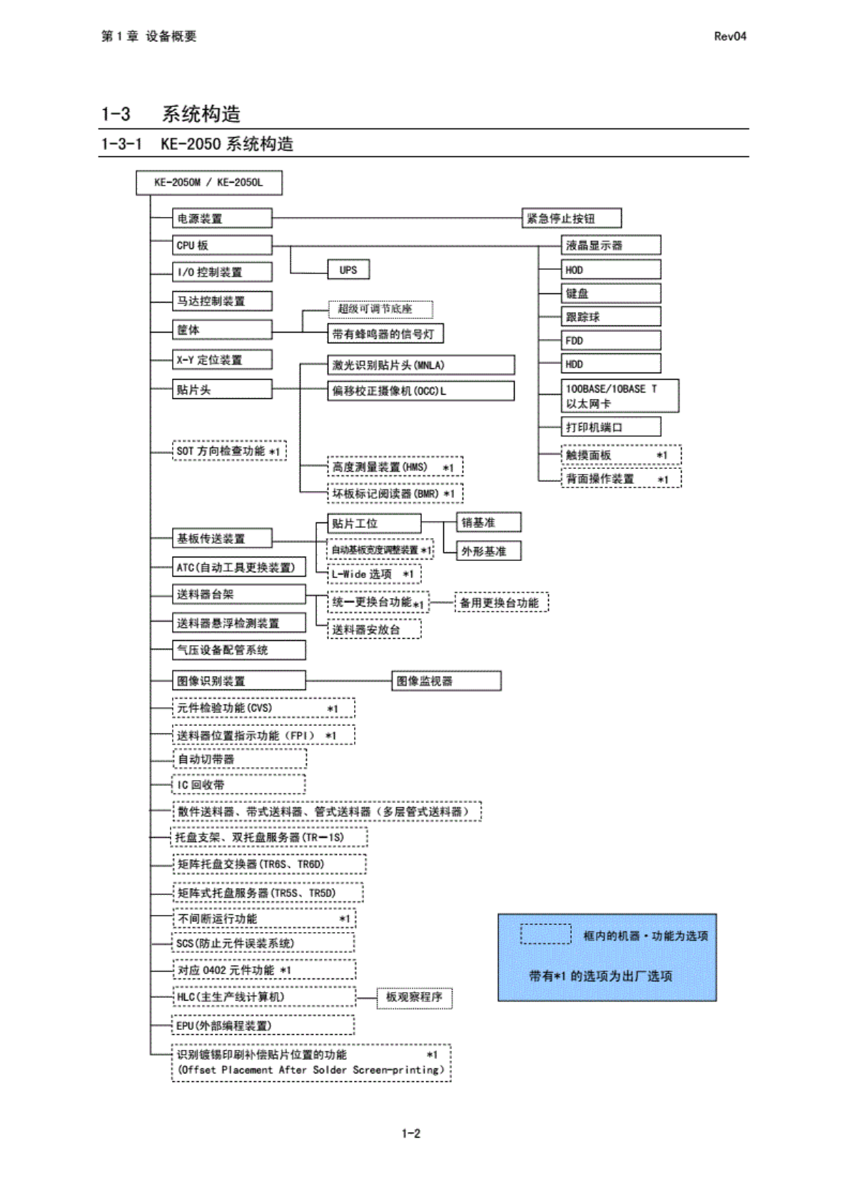 第 1 羞 设 备概要 Rev04 IT-2 KE-2060 系 统构造 KE-2O&0. KE-2Q&0L、 K£-2060£ 睛急停 止按站 电 源装置 CPU 扳 液晶 显示稀 UPS H0O KO 控 制装置 解拯 马达控 制装置 跟踪球 崔停 俞有蛙 鸣器的 信号科 FDO z-¥ 定 位给支 — jWWVC*! ; 强光职 别贴片 HDD - L 贴片集 阳 移校正 摄博机 WOOL 激 北以别 贴片头 {F…