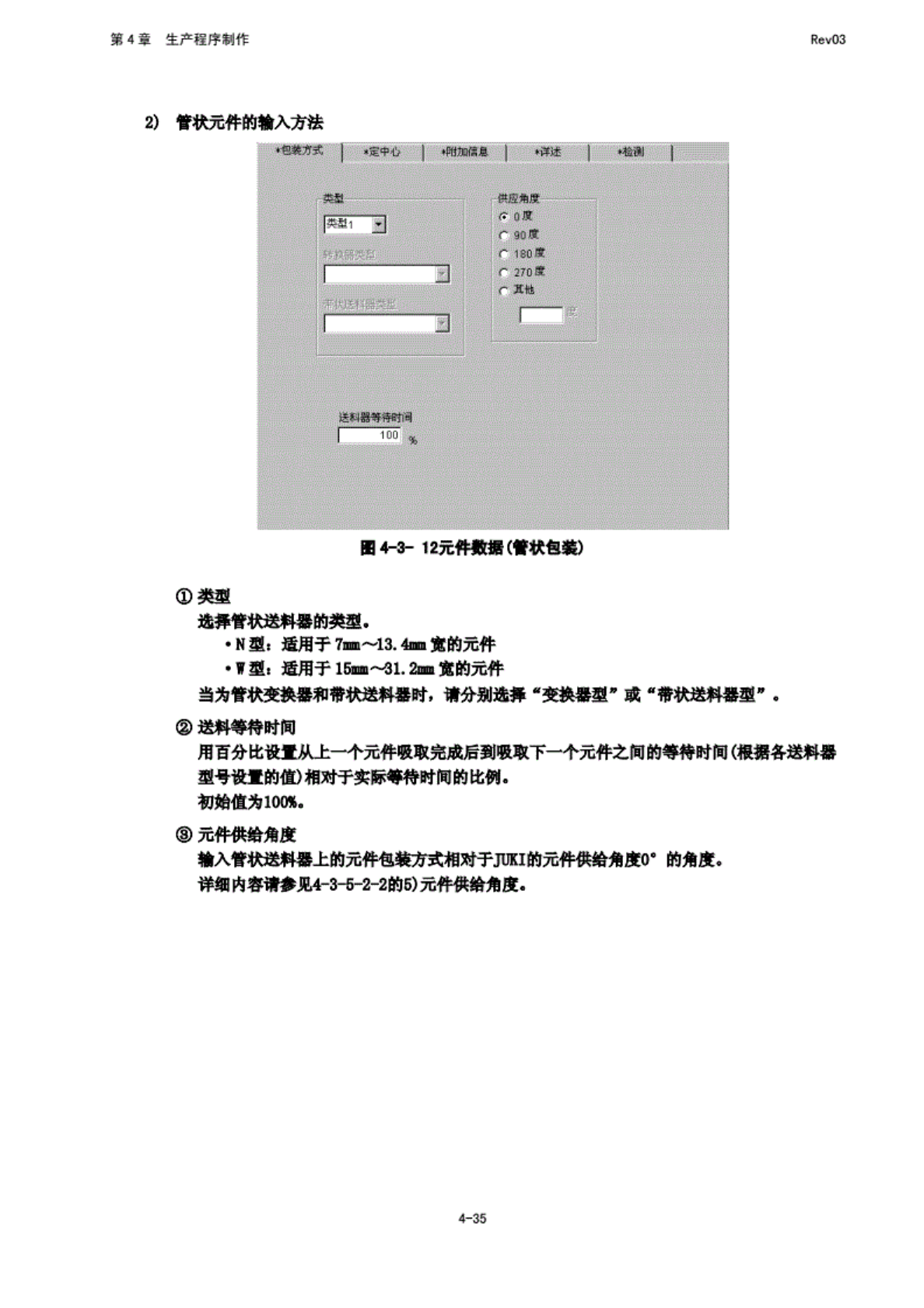 第 4 章 生产程 序制作 Rev03 4-S-5-2-2 包 装方式 1) 带状元 件的输 入方法 地 皖方式 唯中面 "卜 工 酬幅息 | 响迷 :翻 螂解新 ] 苗居 元件 徵屋物 1? 6 0mm 近带 后口度 「 fimm 国带 「 9 0 度 「 !2ee 股错 。 归 0度 L 16m 用辰哥 L 管 口度 「 m m 用反帝 广 其他 「 32mm । 「 32mm 点 .黯上 L 44m 曾展带 「 55m …