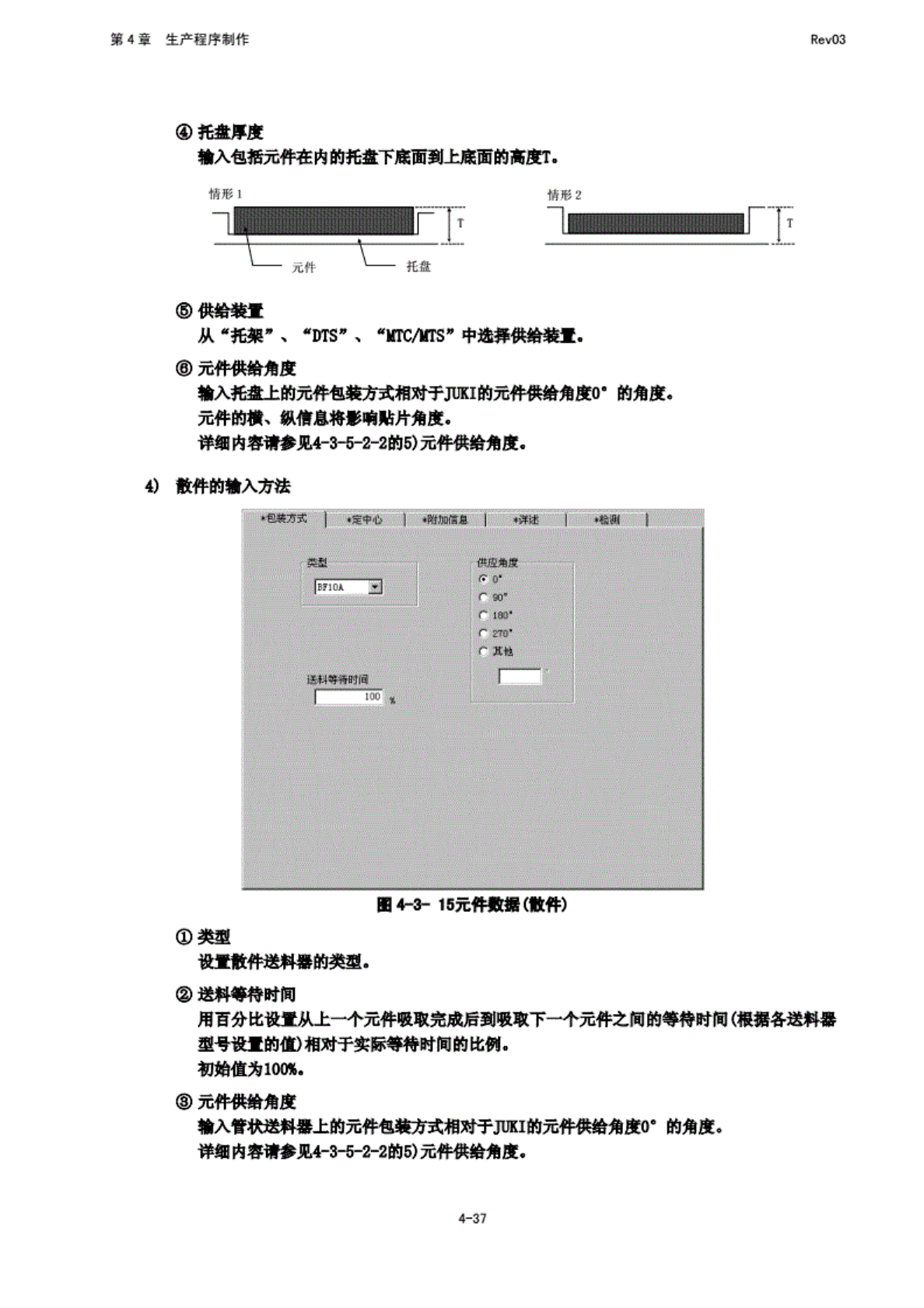 第 4 章 生产程 序制作 Rev03 5) 元件供 给角度 该没 为了消 除本贴 片机规 定的元 件供给 角度 与实际 供箝元 件的供 给角度 的差, 《帮 您理 解》 贴 片角度 本 装量以 .贴片 元件的 集态” 为基准 来定义 元件的 君度. 贴 片角度 =0 度 (当 贴片 数据中 "角 度” 设置为 0 度时) 的 状态加 下图. 俄各元 件种类 定义) 注意) 根据 生产基 板的制 格, 当 CMJ 费据的 贴片…