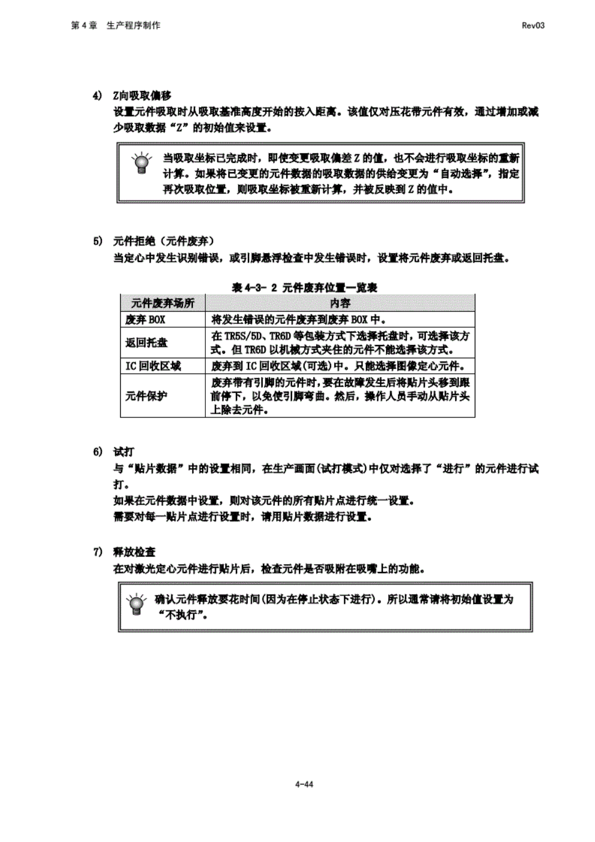 第 4 章 生产程 序制作 Rev03 4) Z 向吸取 假移 设 量元件 吸取附 从吸取 基准高 度开始 的按入 距离. 该懂仅 对压花 带元件 有效, 通过增 加或减 少吸取 蒙据 ”” 的祖 婚值来 也量. 当吸 球坐 标已完 成时, 即使变 更吸取 偏 差 Z 的值, 也 不会进 行吸 取坐标 的重新 计算. 如 果格已 变更的 元件萤 据的吸 取费据 的供给 变更为 .自 动选 界”, 指定 再 次吸取 位置, 则吸 取坐标 …