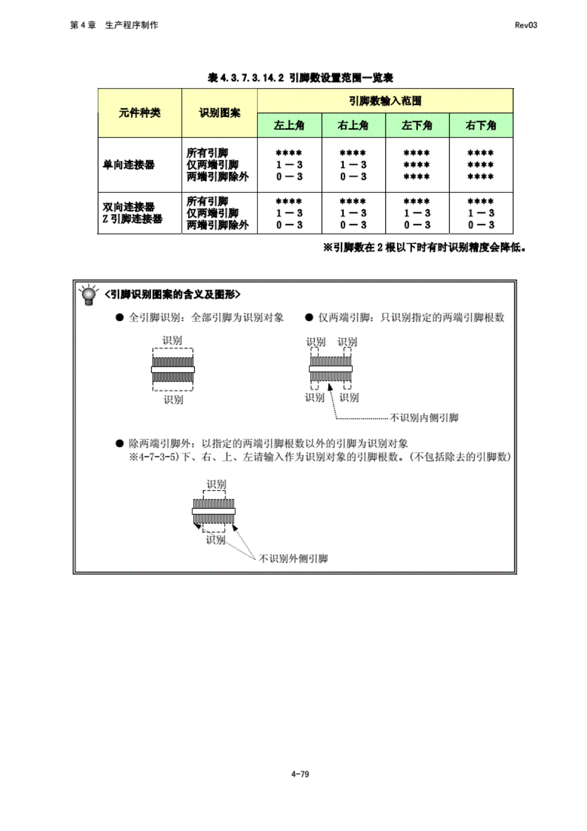 第 4 章 生产程 序制作 Rev03 +-3-7-2-13 引 脚方向 元 件箱类 为单向 里脚 连接 播时, 红有副 脚的面 是上环 是下. 用 CS 海防 选择. 4-3-7-2-14 假 瓣引脚 (左 上, 右上, 左下, 右下) 当为 连接婚 元件 时, 通常很 别所有 引脚, 如 R 能以 别两端 的引脚 或两端 有引脚 以外的 发光物 时, 只识别 两端引 脚或 将发 光物体 假定力 引脚, 仅除去 两端的 引脚谢 河嗯 …
