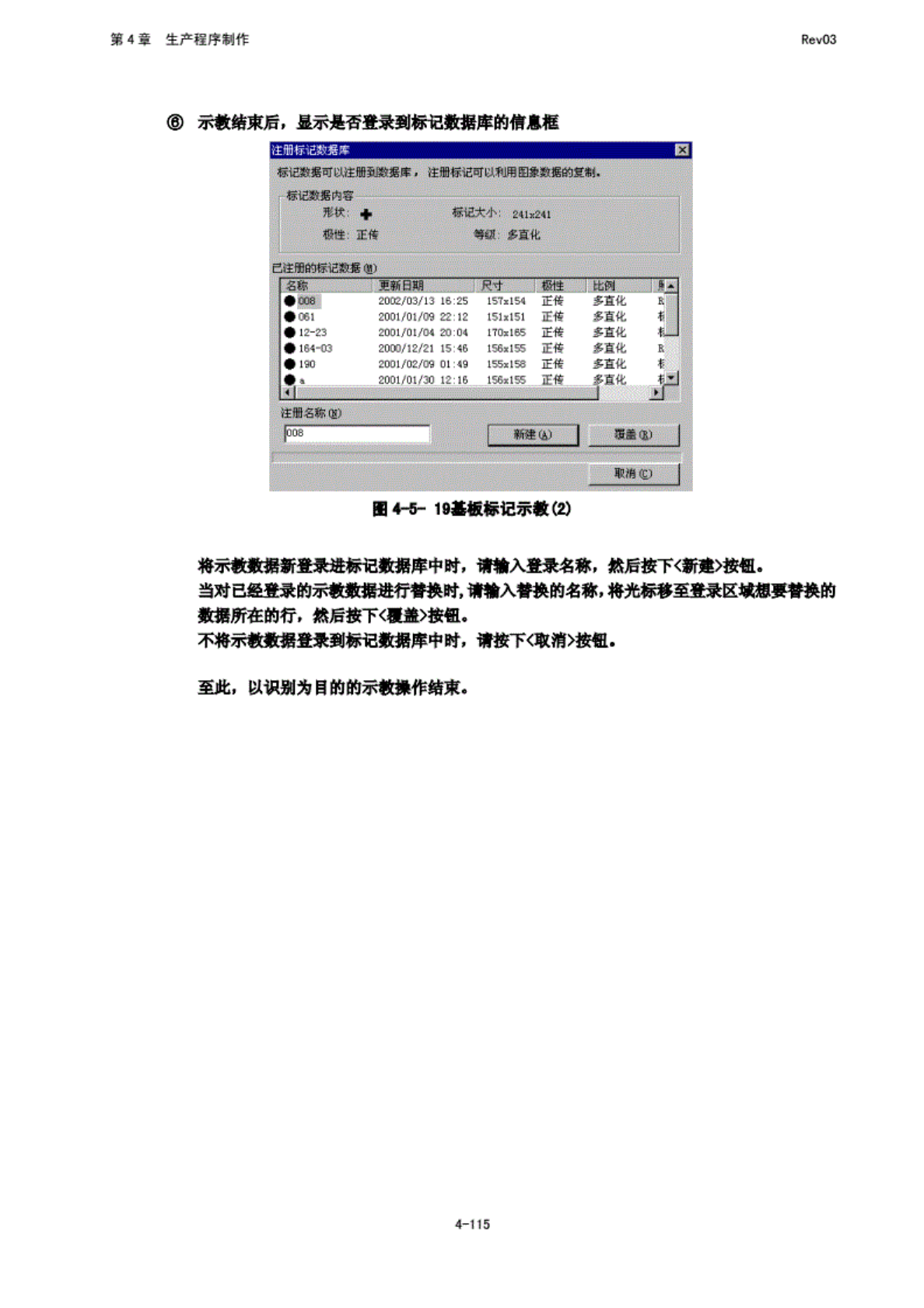 第 4 章 生产程 序制作 Rev03 更 新日期 足寸 雎 20哩血13 16:25 I 升过融 两 20Ql/0t/W 22: 品 151*151 • 12- 鸿 2001/01/04 20:04 ITHE6S •' 164-03 2000/ 12/21 15:^6 156x155 * 190 2DO1/DZ/(H D1 :49 155x158 ,, 20D1/01/30 12:1& 1 视医 示载转 束后, …