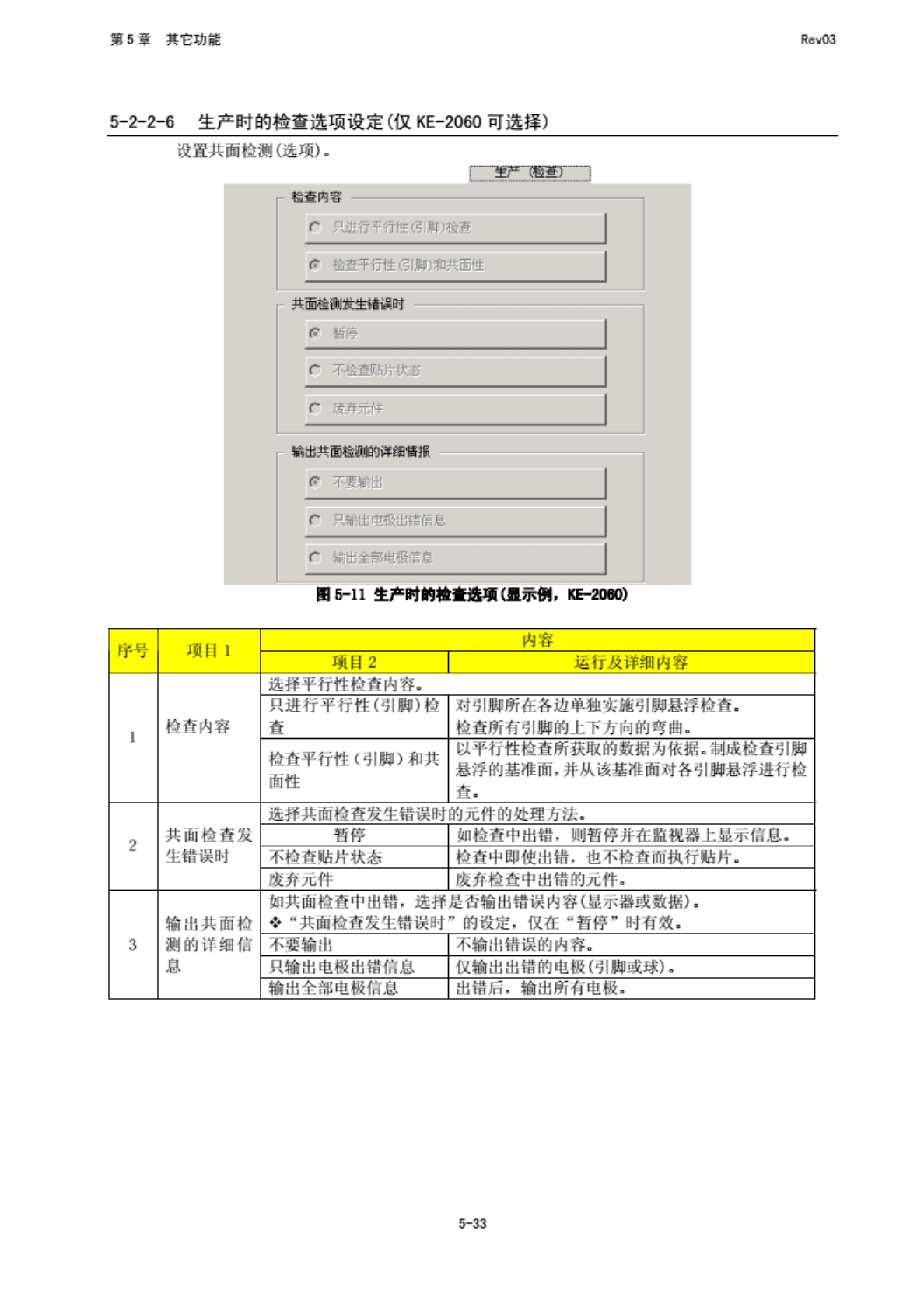 第 5 堂 其 它功能 RfivO3 2 发 生错误 时暂停 设 置出南 ;时 的运行 模式. 发生 生产运 行错误 (包 括元件 用尽) 时, 暂停 生产. 在生产 中即使 发生生 产运行 错误, 只要有 用贴 片的元 件, 则继续 生产. 3 无元件 暂停后 ,重新 越行时 测他元 件高度 设 置元件 用尽重 新 开始时 测量 元件高 度. 审 工 件用尽 重新开 始时测 最元件 高 度. 元杵 用屋 里新开 始时不 同量元 件高度…