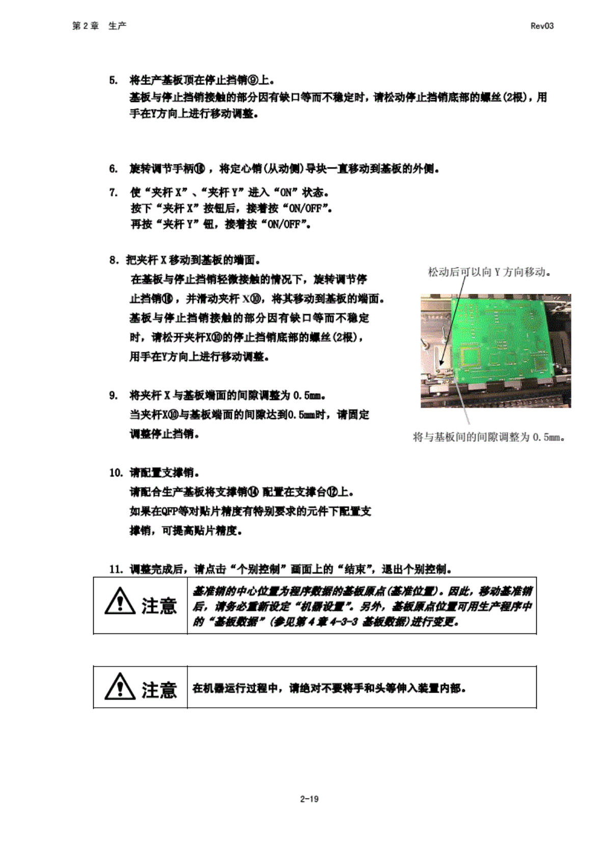 第 2 章 生产 Rev03 2-7-1 T 外形基 准的调 整方法 外形 基准是 不用基 准销, 而遢 过外 德的夹 板装量 Ok y 力向) 来固定 基板的 方法. 当使 用商气 基 板等没 有基准 箱孔或 孔径与 基准情 宜 轻不 符的基 板时, 选 择此方 法进行 调整. 《步* 1 . 启动 生产. 从 菜单栏 E& 押 恒口) 税植送 - 1/0 状态。 选择 “个别 传送控 制”, 按 “个别 控制” 按犯. 出 …