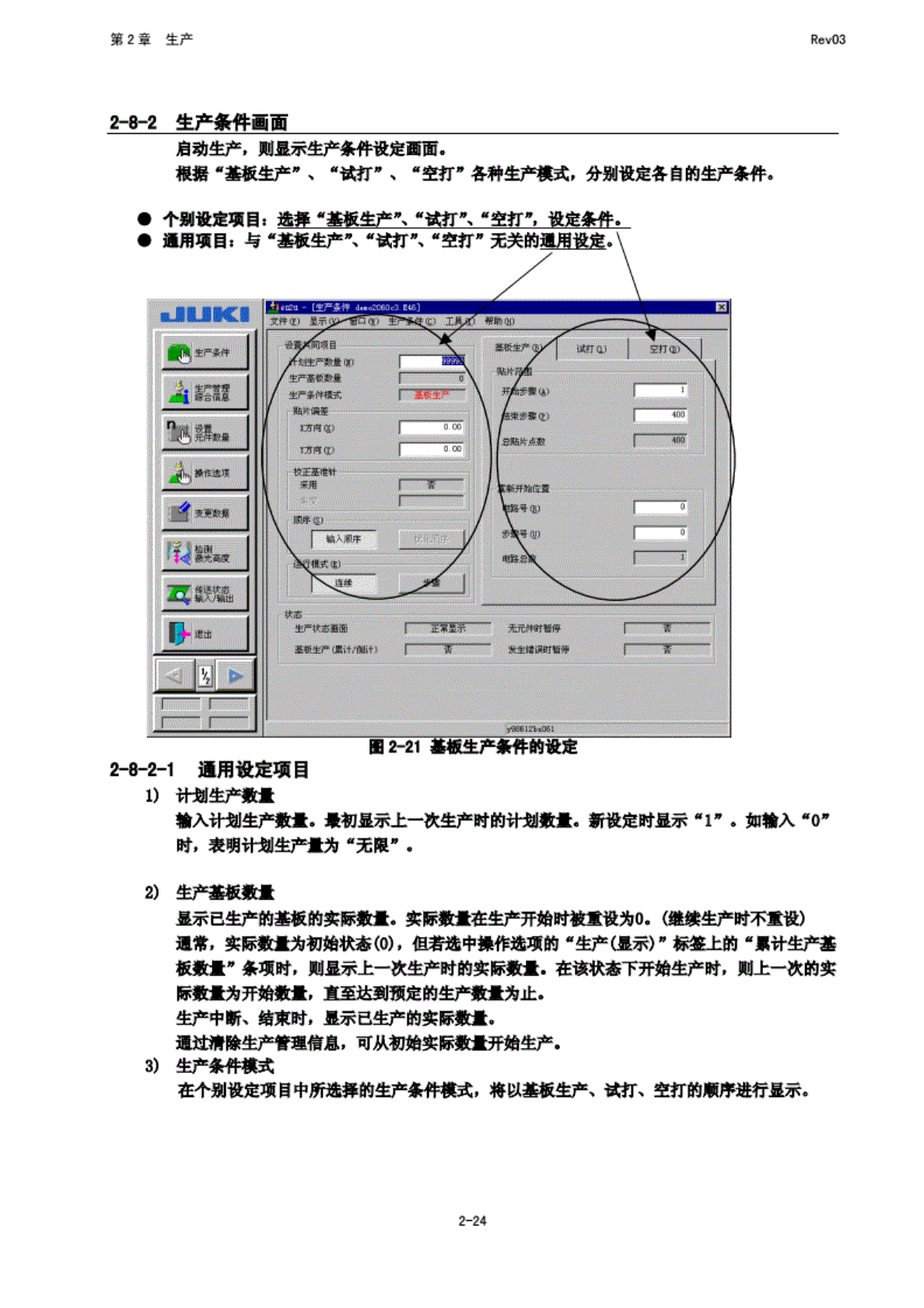 第 2 荤 生产 Rev03 2-8 生 产画面 2-8-1 生 产画面 的启动 在 主画面 上选择 '生 产。 / 生产# , 或选 择命令 按钮的 "生产 (基板 生产) 用 , 则 显示如 下的生 产条件 设定画 面, 请 指定生 产条件 (费见 *2-8-2 生产 条件 画面用 3 图 2-20 生 产画面 2-23