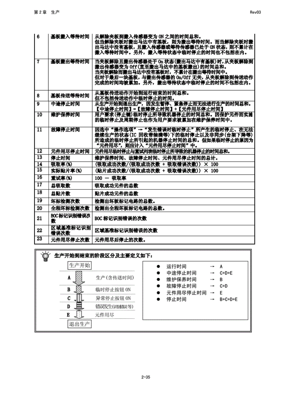第 2 章 生产 Rev03 2-9 生产管 理信息 当 生产模 式为基 板生 产时, 生产 管理信 息将被 保存. 本 项中, 可 以查看 生产中 被保存 的生产 管理 信息. 2-9-1 生产管 理信息 - 1) 生产 管理信 息的收 集条件 生产 模式为 基板生 产且对 所有书 片点进 行贴片 进行过 一次收 集后, 下一次 生产开 始时, 将以上 一次怕 II 的数据 为基础 进行追 加超 11. 超要 进行新 的数据 收集 时…