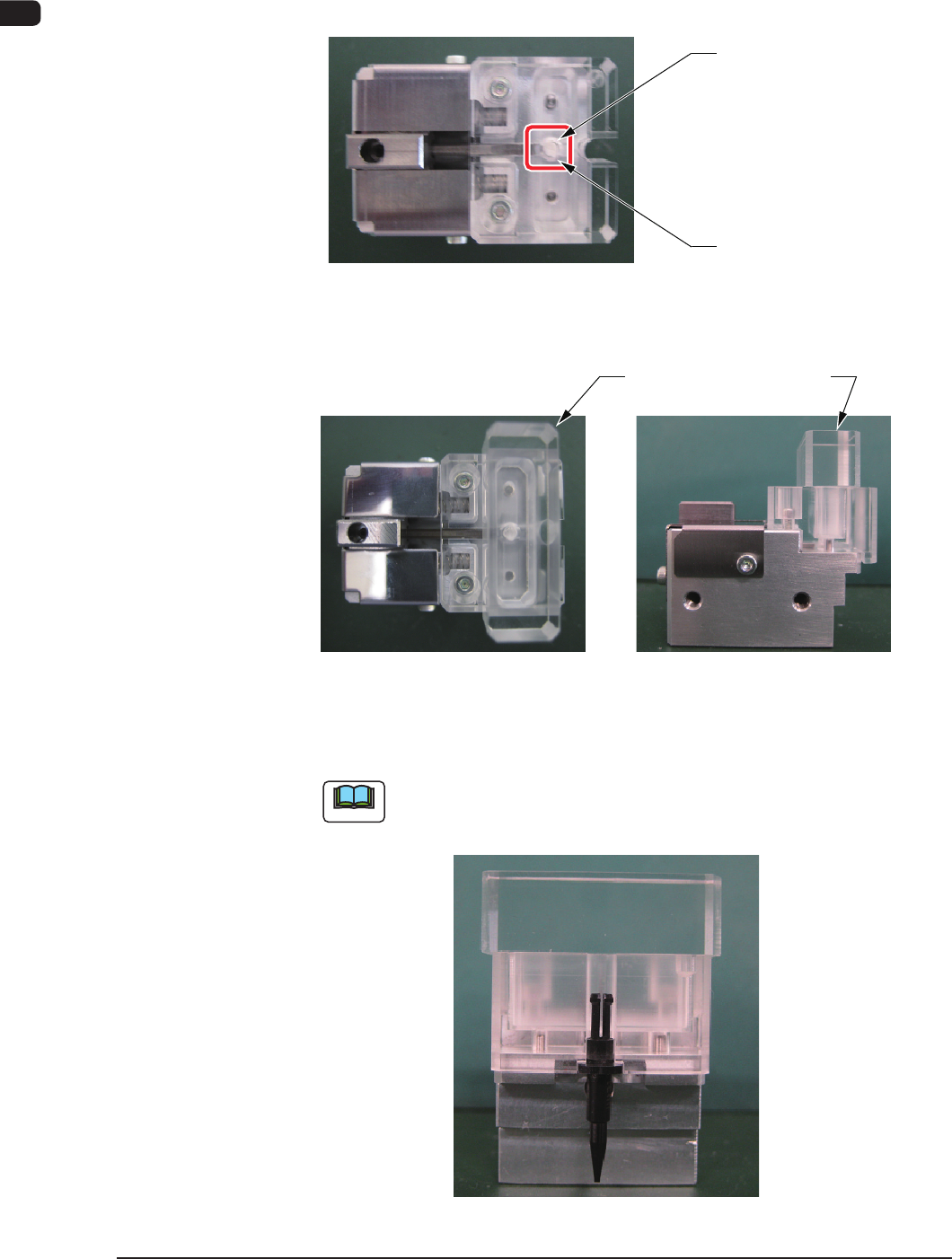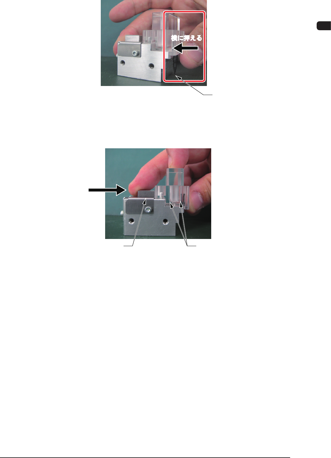 (5)スライド部を本体アクリルブロック端面まで押し、ノズル用フィル
