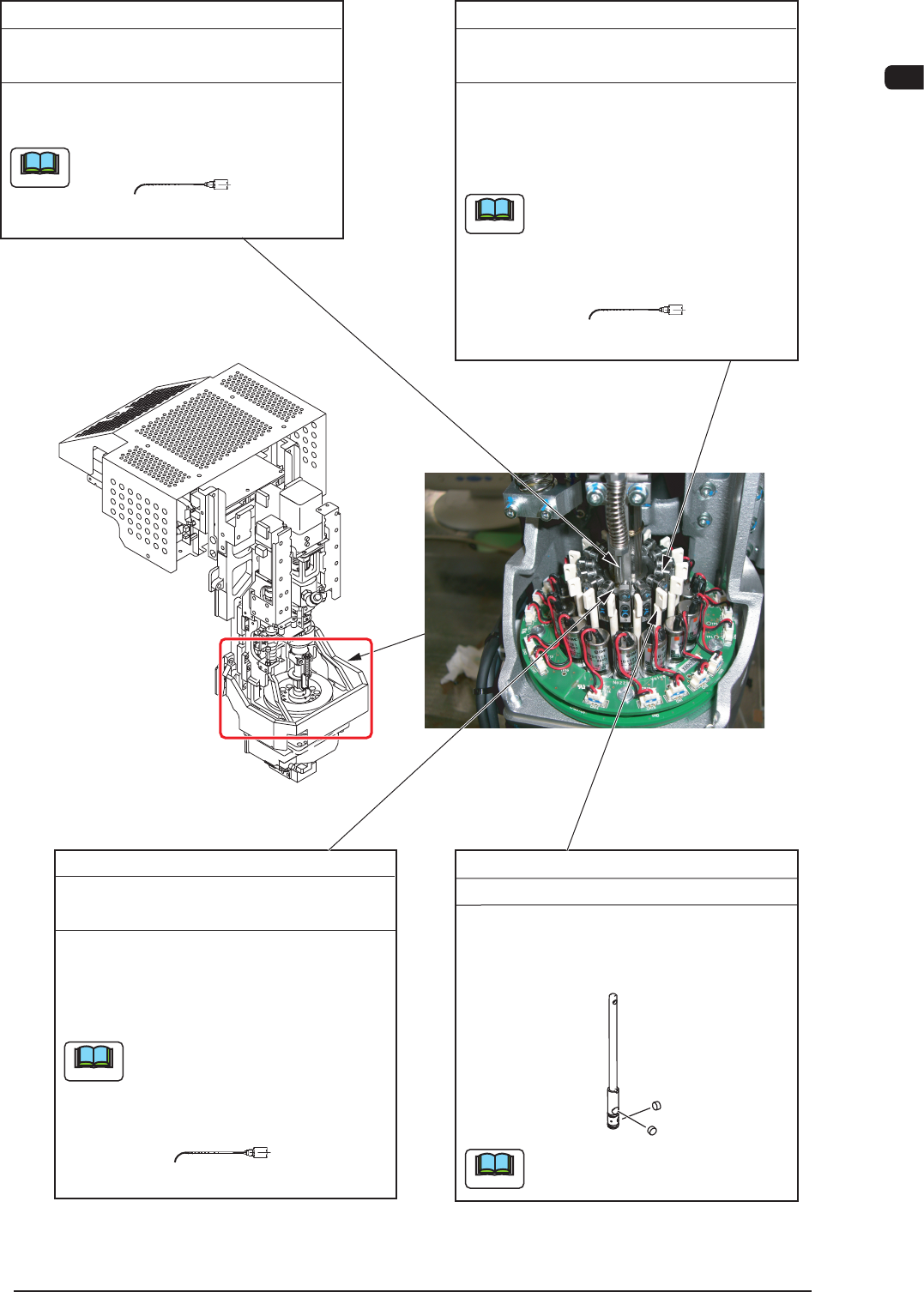 4OM-1609 1-32 1 章 3. メンテナンスか所 ヘッド上下ボールネジ(HL軸) 3か月ごと 清掃、給油 所要時間:5分 (ダフニーエポネックスグリースNo.1) (1) ウエスで古いグリースを拭取って、 ボールネジの溝に新しいグリースを シリンジで少量塗ります。 (2) 給油後、HL軸を手動操作(インチング) で25mm上下動作を5回繰返し、グリース を馴染ませてください。 使用するノズルはNo.19(茶)です。 No.19…