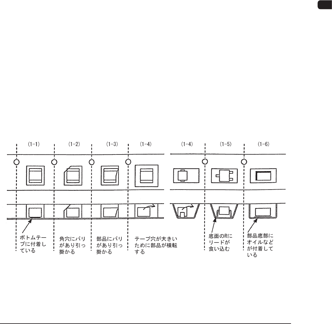 (1-1)部品がボトムテープに付着している。