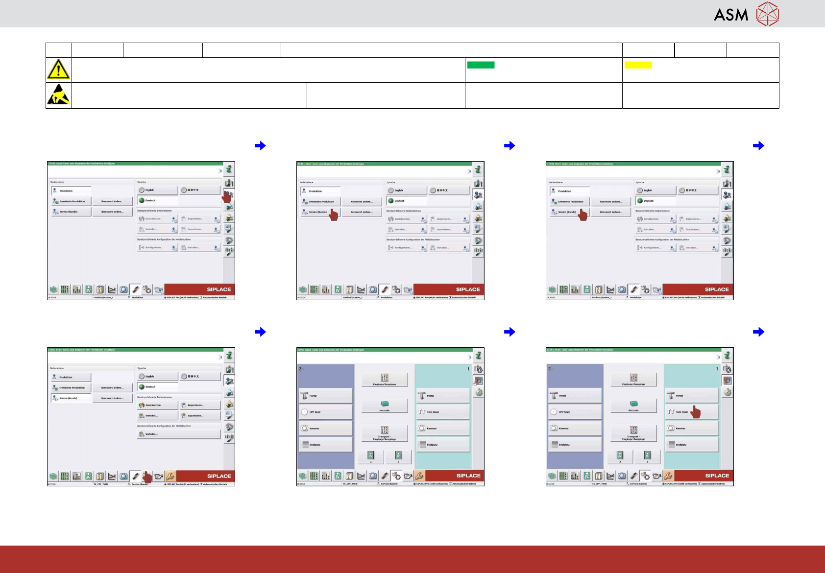 7 Symbol "Benutzereinstellungen" anklicken. 8 Symbol "Service (Kunde)" anklicken. 9 Für Einbau derselben Köpfe weiter mit