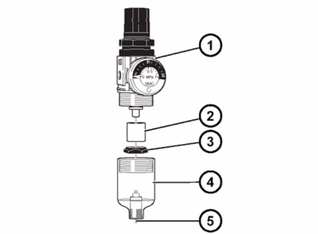 schrauben Sie den Kondenswasserbehälter vom Druckminderer (1). Wenn Sie nun das Trenn-