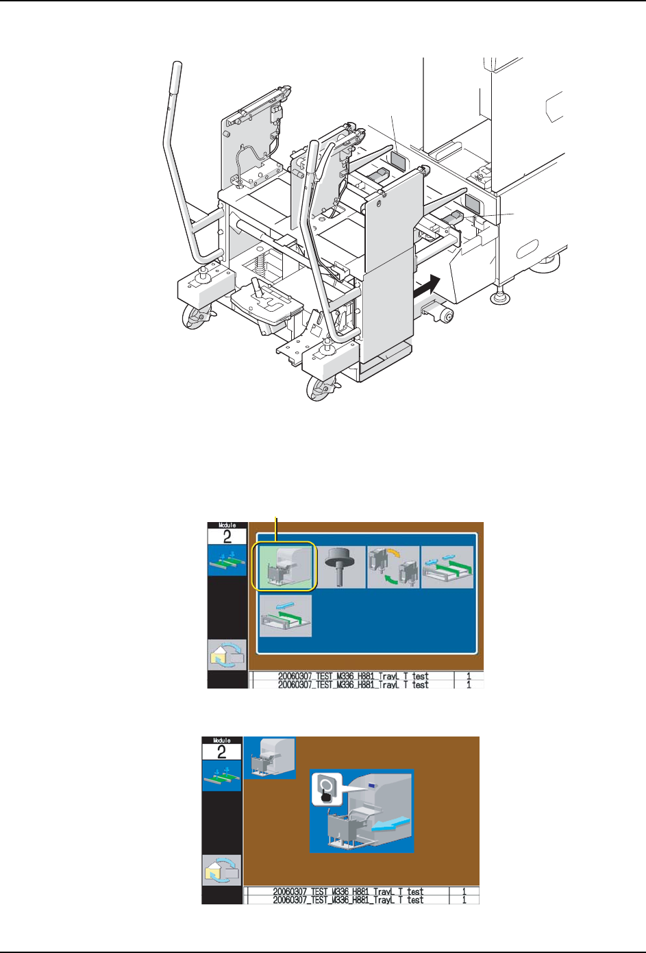 8. 在料站托架拉出向导画面上,按下 OK 按键,松开料站托架。