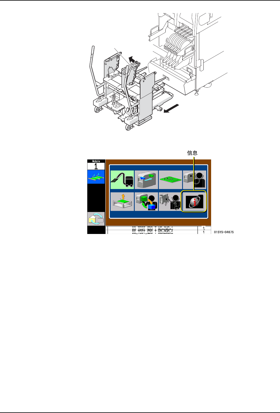 备注 )在模组上搭载料盘单元 -LT 的时候,此时显示出拆除料盘单元的画面,请根据向导拆