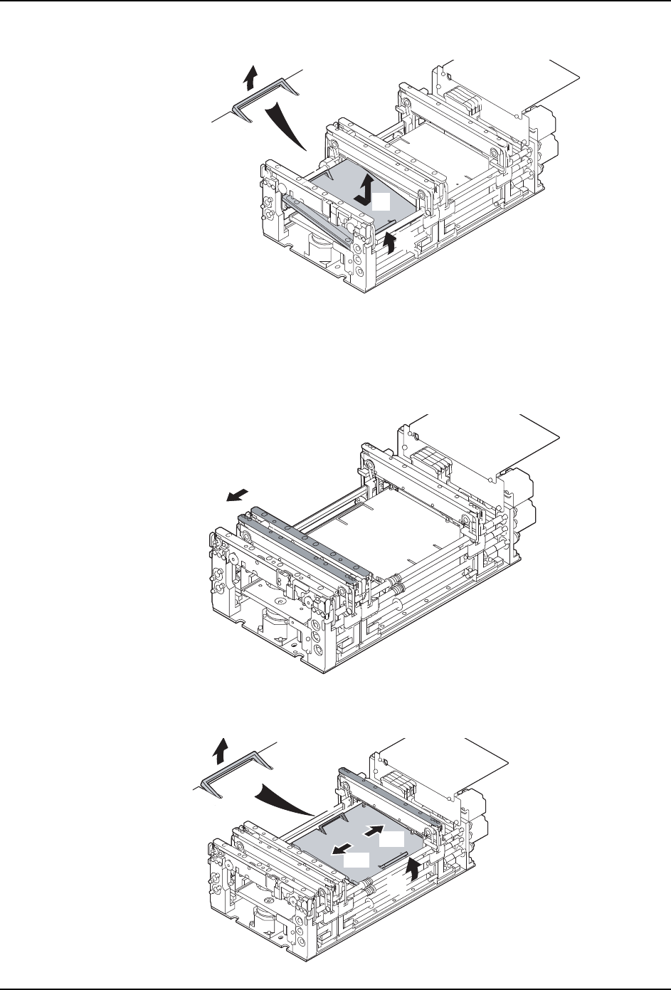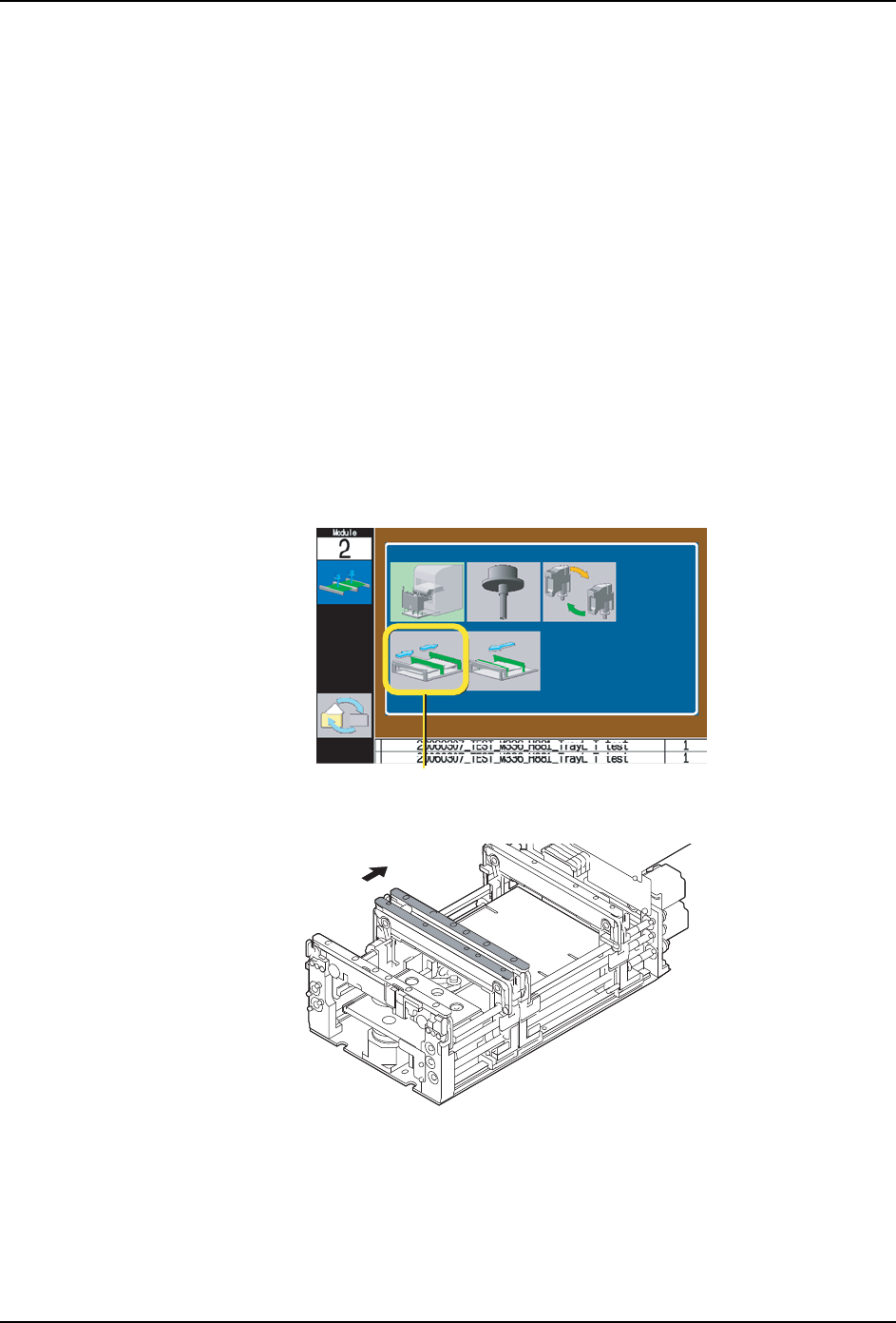 11.在操作面板上显示出拆除支撑板的向导。请滑动通道 2 侧的支撑板,安装在与通道 1 支