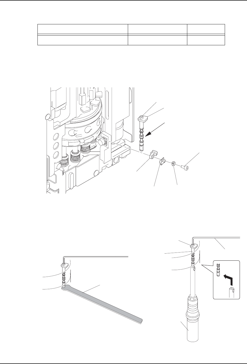 5. 预防保养 MEC-NXTIIc-3.3S 242 NXT IIc 机械手册 5. 请向下方拔出推杆。 6. 请用指甲等夹住 O 型圈后缠绕。在 O 型圈和推杆之间的间隙中 插入 O 型圈更换治具 (PM072M*) 的 细的一头后, 拆除 O 型圈 (6 个 )。 7. 请把 O 型圈从 O 型圈更换治具的细的一头放入到粗的一头中,拉长 O 型圈。把推杆放入 O 型圈更换治具,在漕和治具端面对齐的状 态下,嵌入 O 型圈 (6 个…