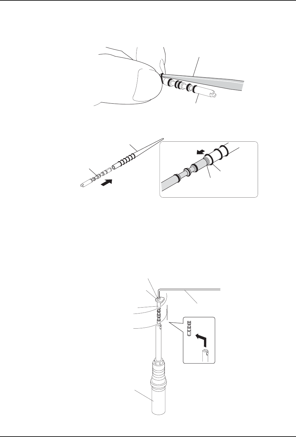 6. 请用指甲等夹住 O 型圈后缠绕。在 O 型圈和推杆之间的间隙中插入 O 型圈更换治具