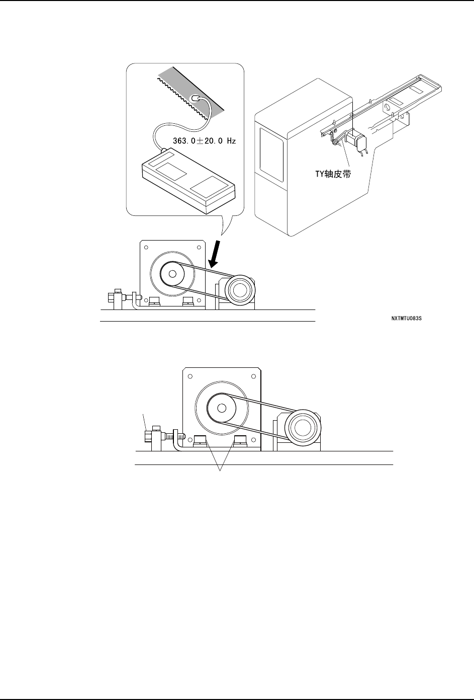 1. 请测定皮带的张力。确认皮带中央的测定值是 363.0±20.0Hz。