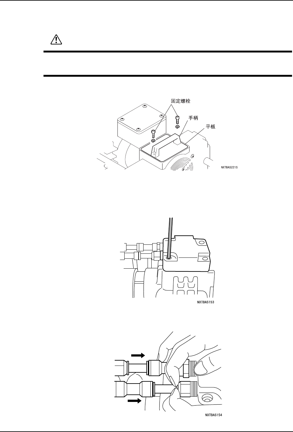 b. 用双手将装配接头向己方按压,拔掉连接管。拆下工作头盖罩。此时,请将左右的