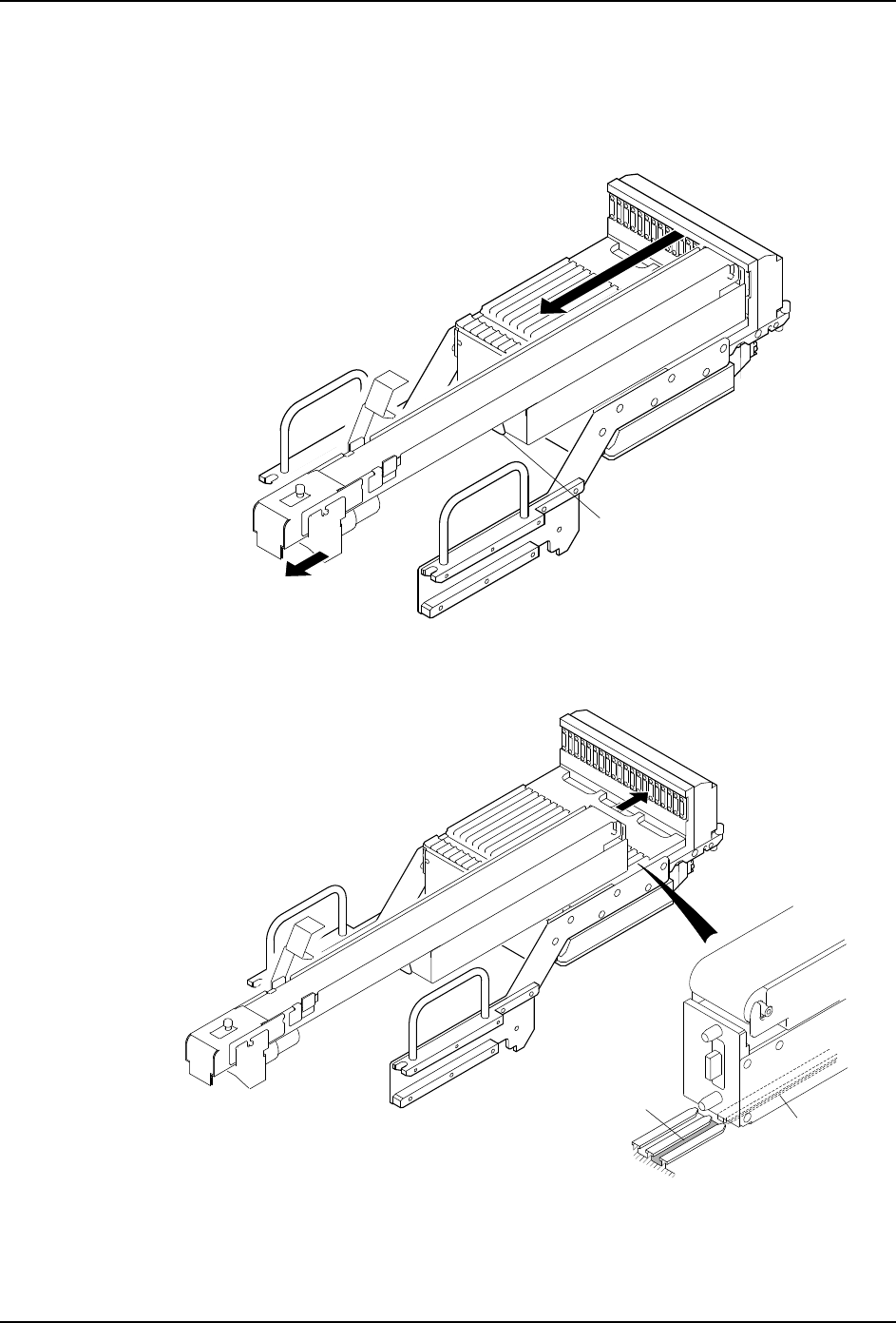 7. 部件的更换 MEC-NXTIIc-3.3S 416 NXT IIc 机械手册 3. 请将夹紧板手在向图的方向拉的状 态下使元件排出单元滑动。请确实押入到底以后再放 开夹紧板。请确认前侧部的插头确 实地插入到料站托架侧的插座中。 01MEC-0783S །㋻ᵓ᠟