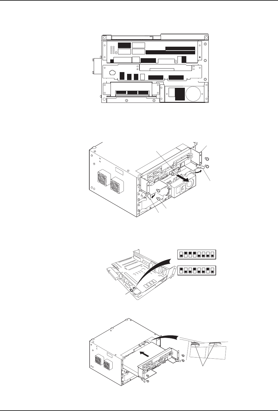 MEC-NXTIIc-3.3S 7. 部件的更换 NXT IIc 机械手册 431 7. 请使用 No.1 尺寸的十字螺丝刀和一字型螺 丝刀,拆除在 CPU 箱的■表示部分的连接电 缆。 7.8.3 CPU 电路板的更换 1. 用 No.1 尺寸的十字螺丝刀拆下螺丝 (4 个 ),拆除 CPU 电路板和影像电路板间电缆的接 插头。请拉手柄拔出 CPU 电路板。 2. 请确认新的 CPU 电路板的双列直插开关的设定 。 注意 )如果设定错…