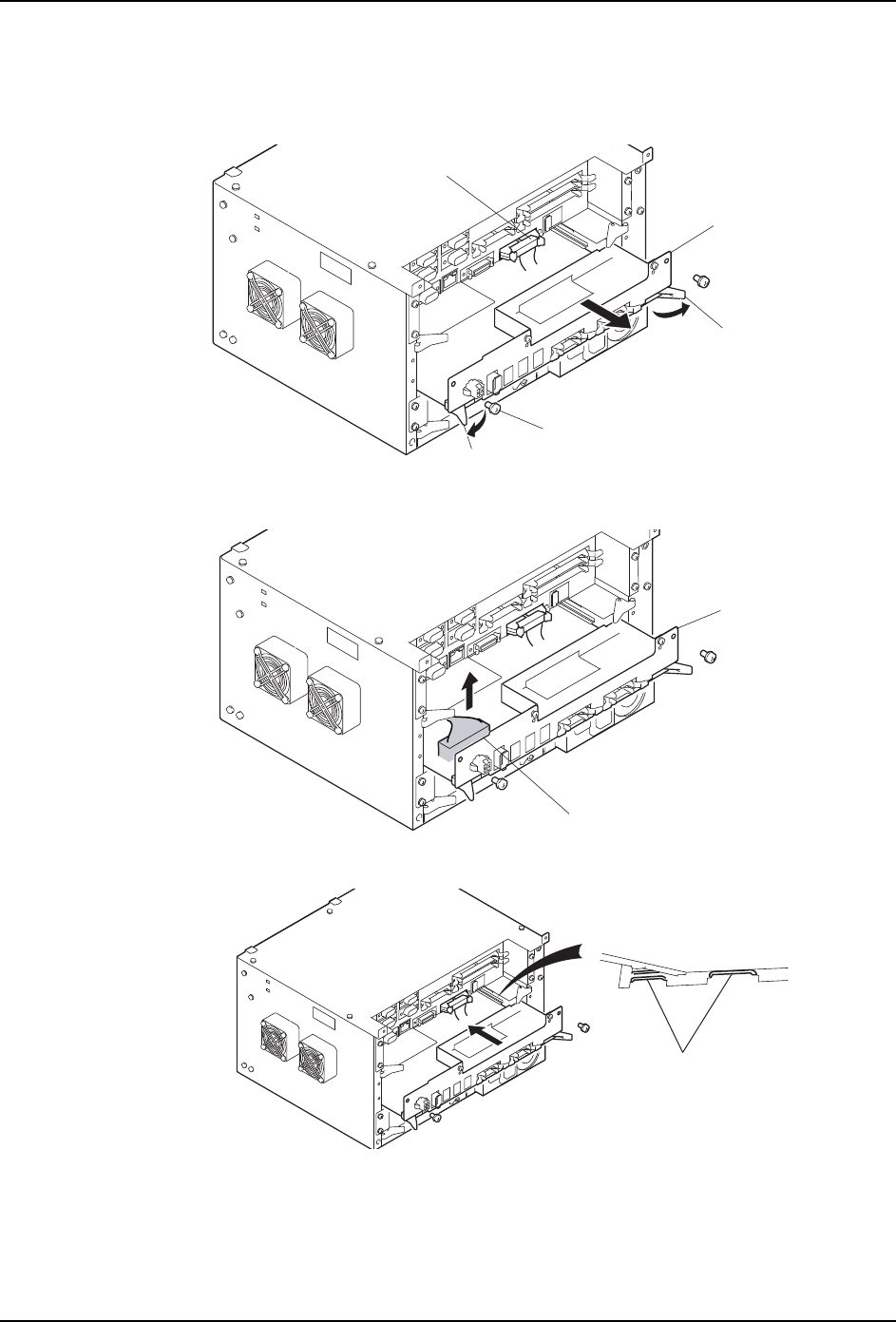 ·在进行更换电路板的操作时,请注意使其他的操作者不要进行插入模组的操作。有手