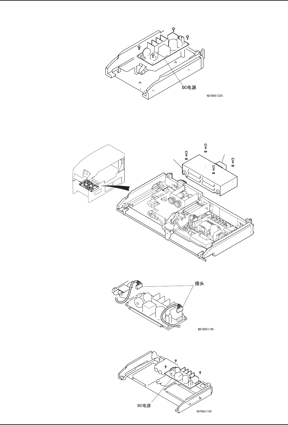 4. 拆下螺丝 (4 ),从料站基座上拆除 DC 电源并更换。