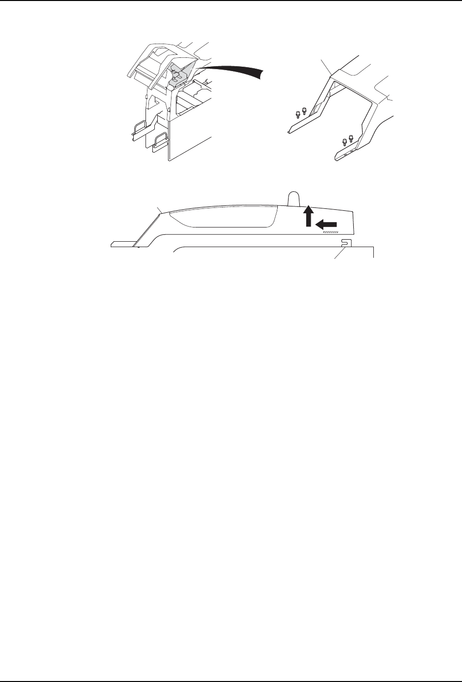 6. 请拆除顶盖罩 . 顶盖罩用挂钩固定 , 请向前方滑动后抬起。