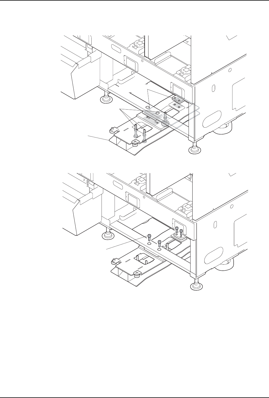 4. 请旋转 3 根调整高度螺栓。使 PCU 的高度与基座安装面的高度一致。