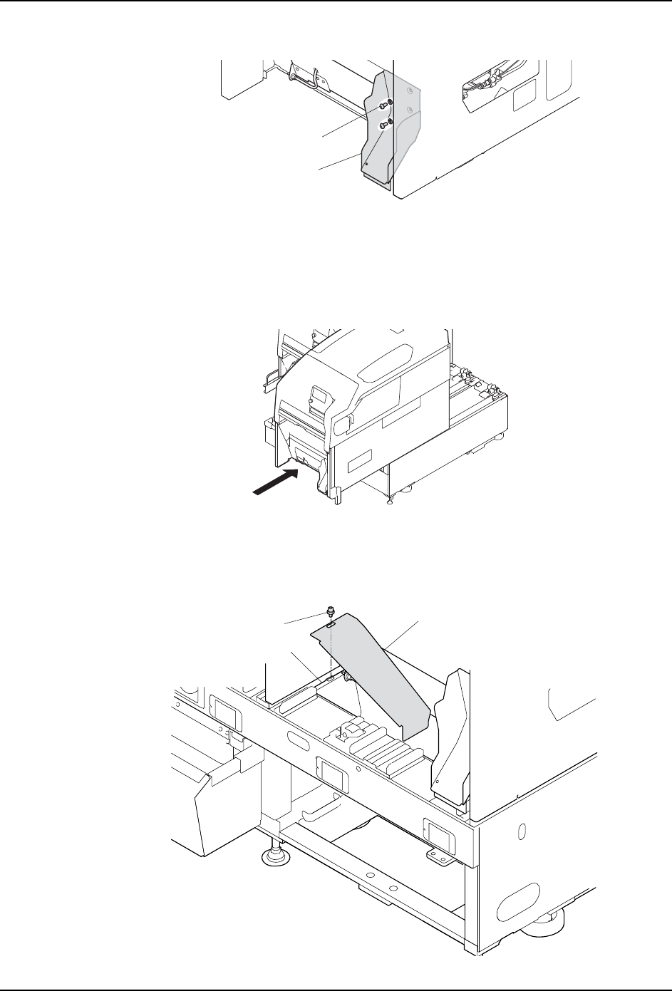 8. 对应各种功能时的准备操作 MEC-NXTIIc-3.3S 526 NXT IIc 机械手册 13.请拆除模组正面下 部的盖板。 14.请安装料盘单元 -LT 用盖 板。 a. 请在步骤 11 安装的料盘单元 -LT 用空气耦合器的插座上拆除插头 。 b. 把料盘单元 -LT 用盖板的空气管处附带的空气耦 合器插座放入模组前侧的开口部, 拿到废料带处理单元附近。 c. 请使用以在步骤 13 拆除的螺丝,安装模组料盘单元 -LT 用盖…