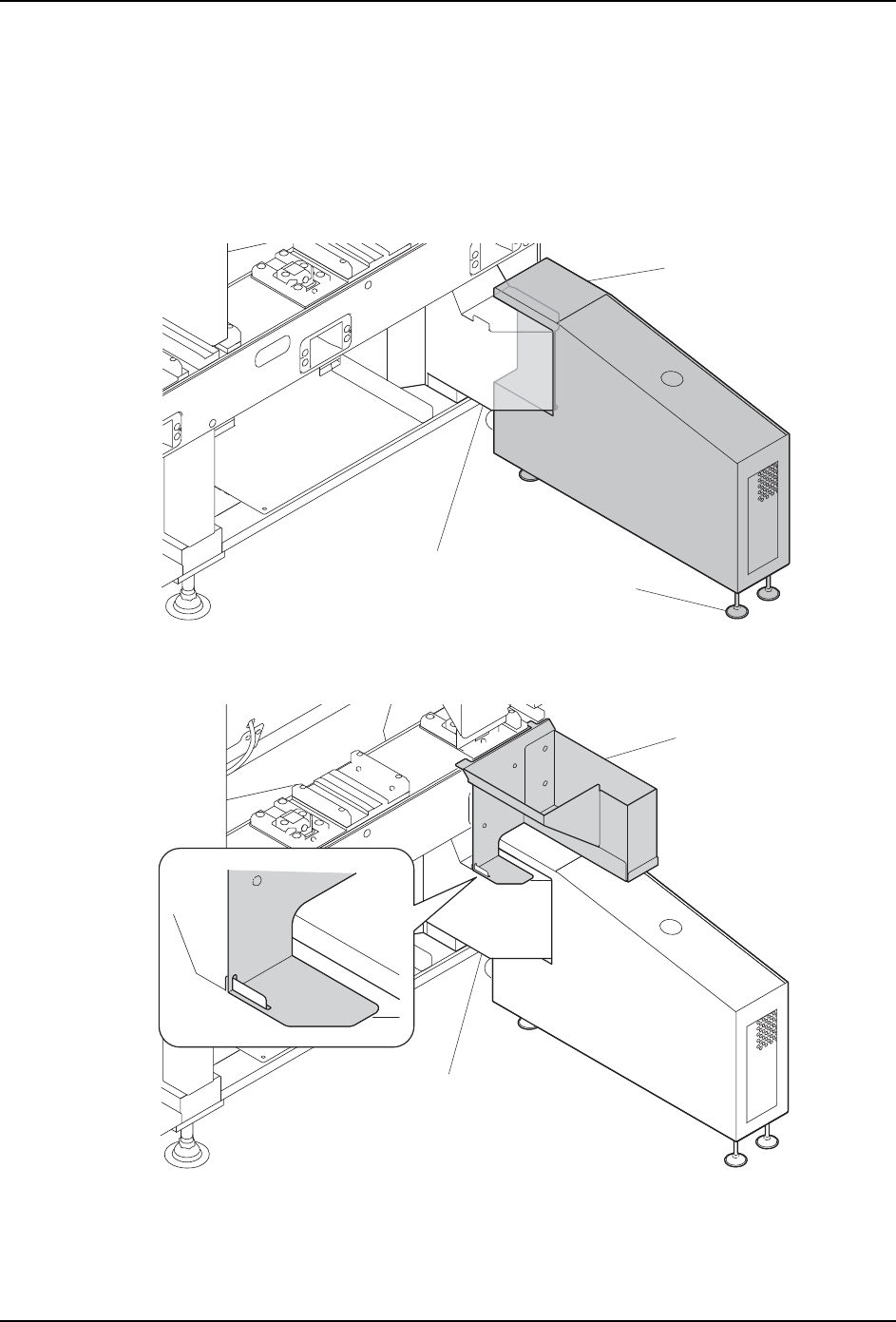 MEC-NXTIIc-3.3S 8. 对应各种功能时的准备操作 NXT IIc 机械手册 529 20.请安装料盘单元 -LT 用外 置废料带箱。 a. 请松开料盘单元 -LT 用外置废料带箱的调整高度螺栓的螺母。 b. 请旋转调整螺栓,将料盘单元 -LT 用外置废料带箱的开口部与料盘单元 -LT 用废料 带箱的开口部的高度对齐。 c. 请在料盘单元 -LT 用外置废料带箱的开口部上嵌 入料盘单元 -LT 用废料带箱的开口 部,用磁铁固…