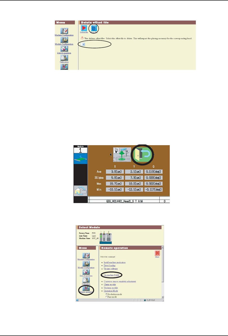 2. 在机器设定画面上,请确认取得 PAM 测定结果的模组。选择 「远程操作」- 「机上