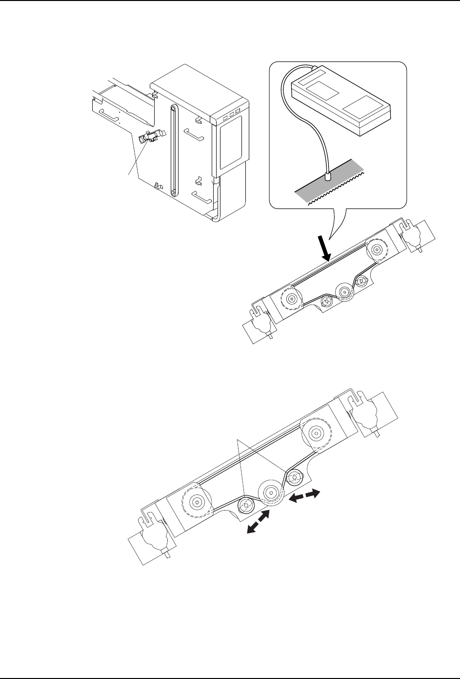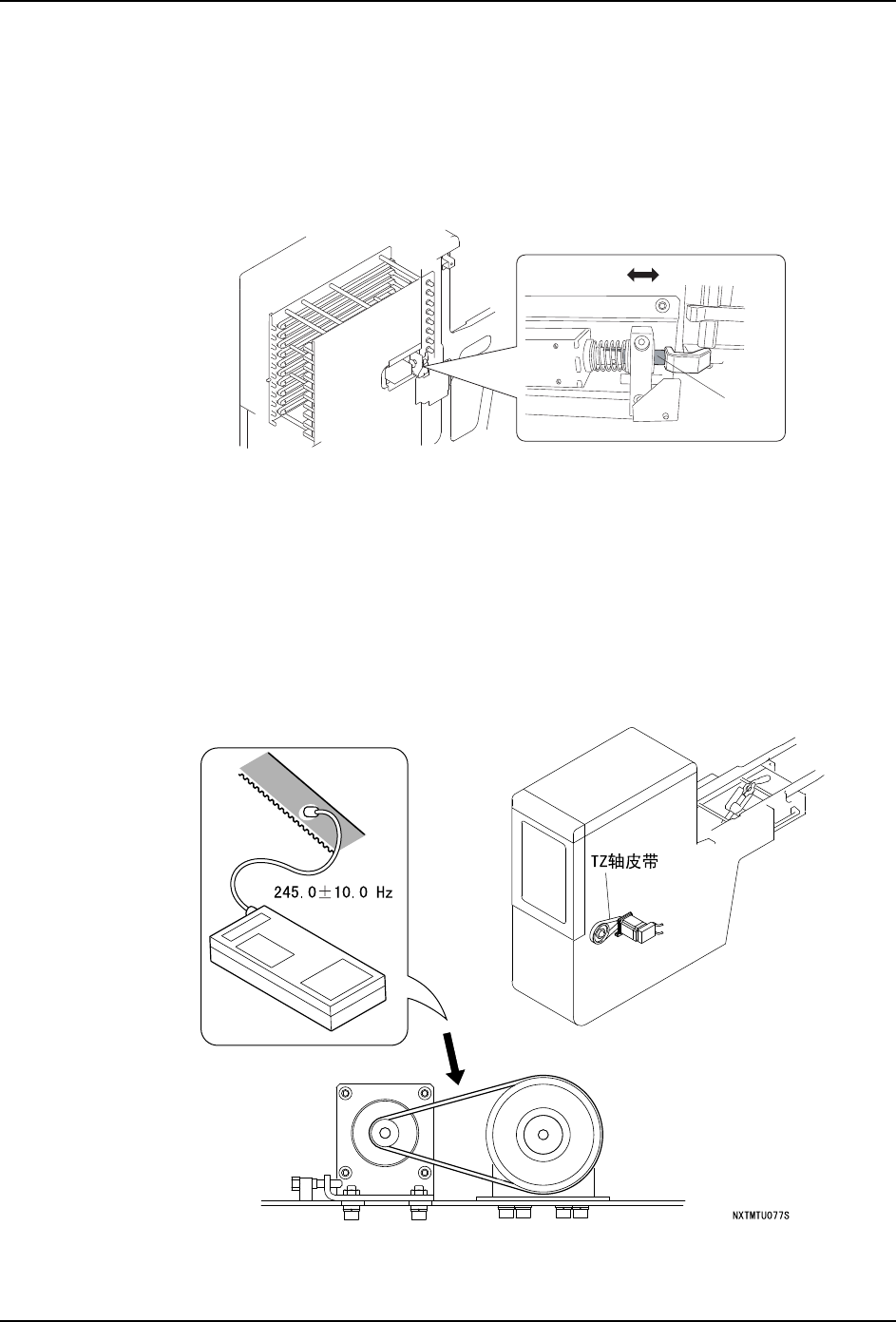 1. 请测定皮带的张力。确认在跨距最长的皮带中央的测定值是 245.0±10.0Hz。