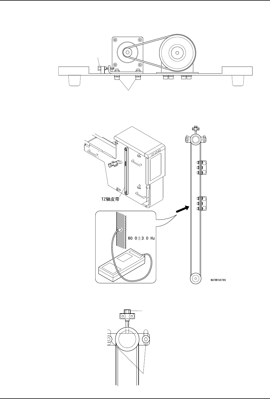 1. 请测定皮带的张力。确认在跨距最长的皮带中央的测定值是 60.0±3.0Hz。