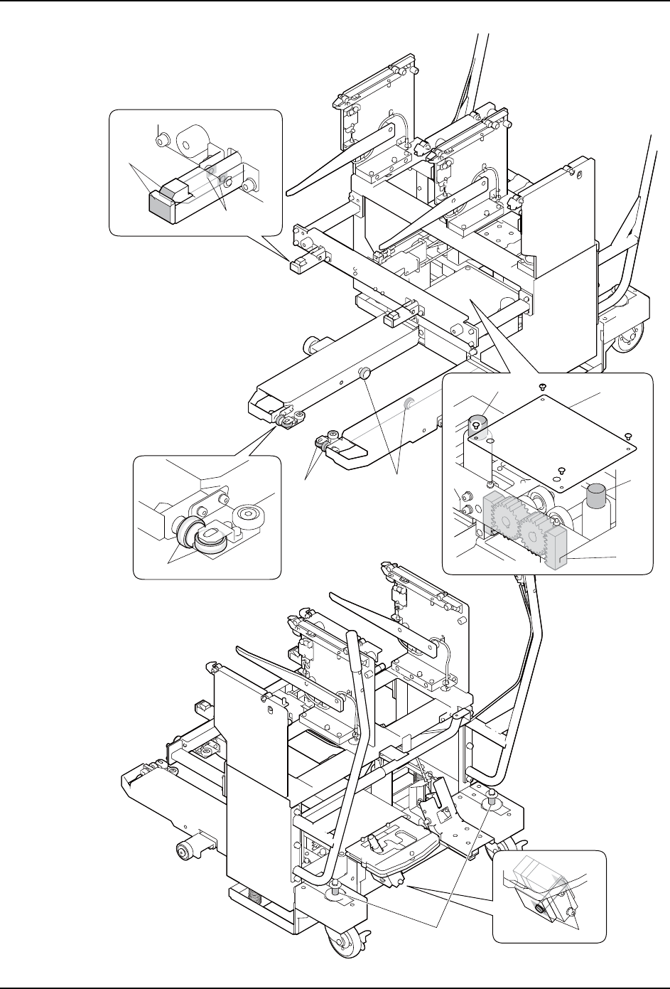 ·对 (4)、(7)、(8)、(10) 的支点销的加油,请在滑轨部的间隙周围涂敷润滑油。