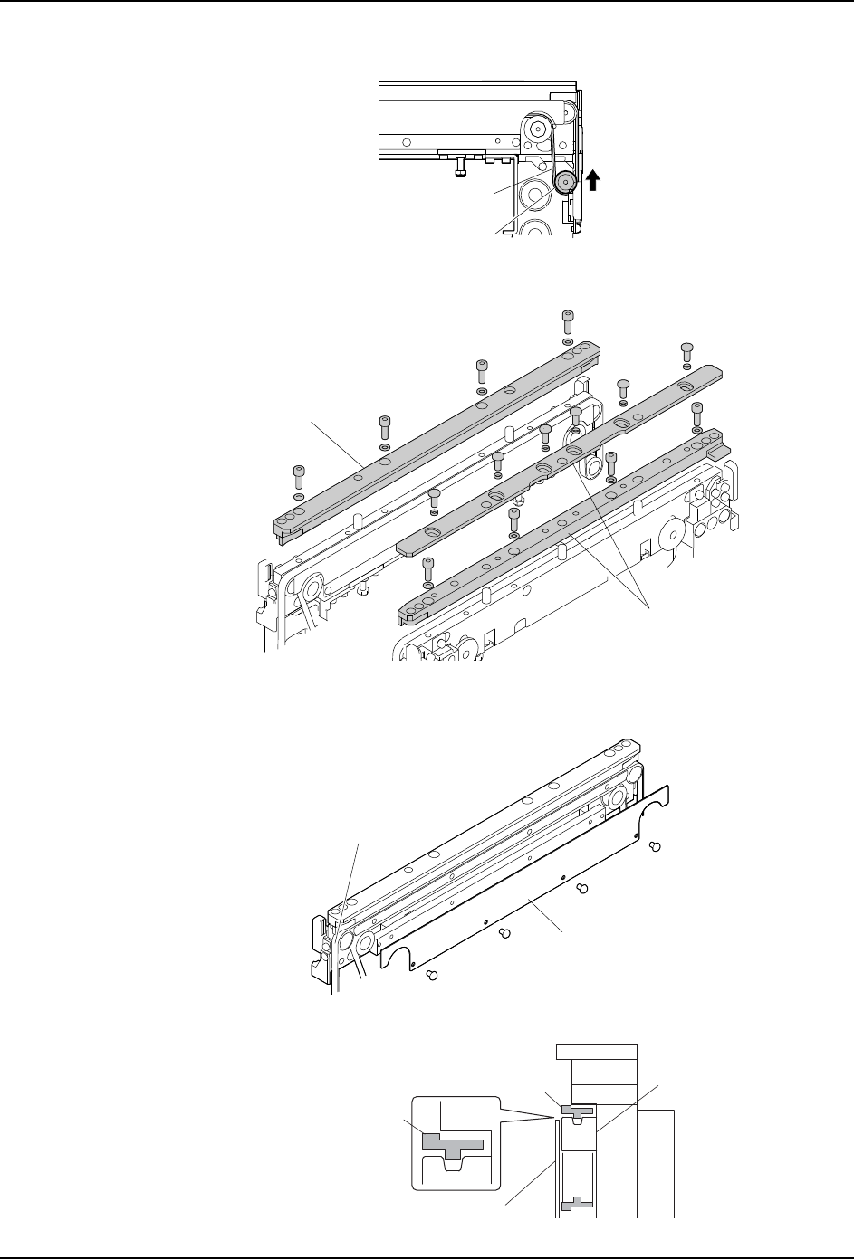 MEC-NXTIIc-3.3S 6. 消耗品的更换 NXT IIc 机械手册 307 6. 消耗品的更换 6.1 关于消耗品 消耗品就是伴随着机器的运转而 损耗的物品,即使在机器的保修期内也收费。 关于作为消耗品 的部件,请参 考机器和各个 单元的 「PA RTS LIST」 。 6.2 搬运轨道传送带的更换 6.2.1 更换时期 电路板搬运异常时。 6.2.2 更换方法 请同时更换基准侧、从属侧的搬 运轨道传送带。 1. 请将轨道移动…