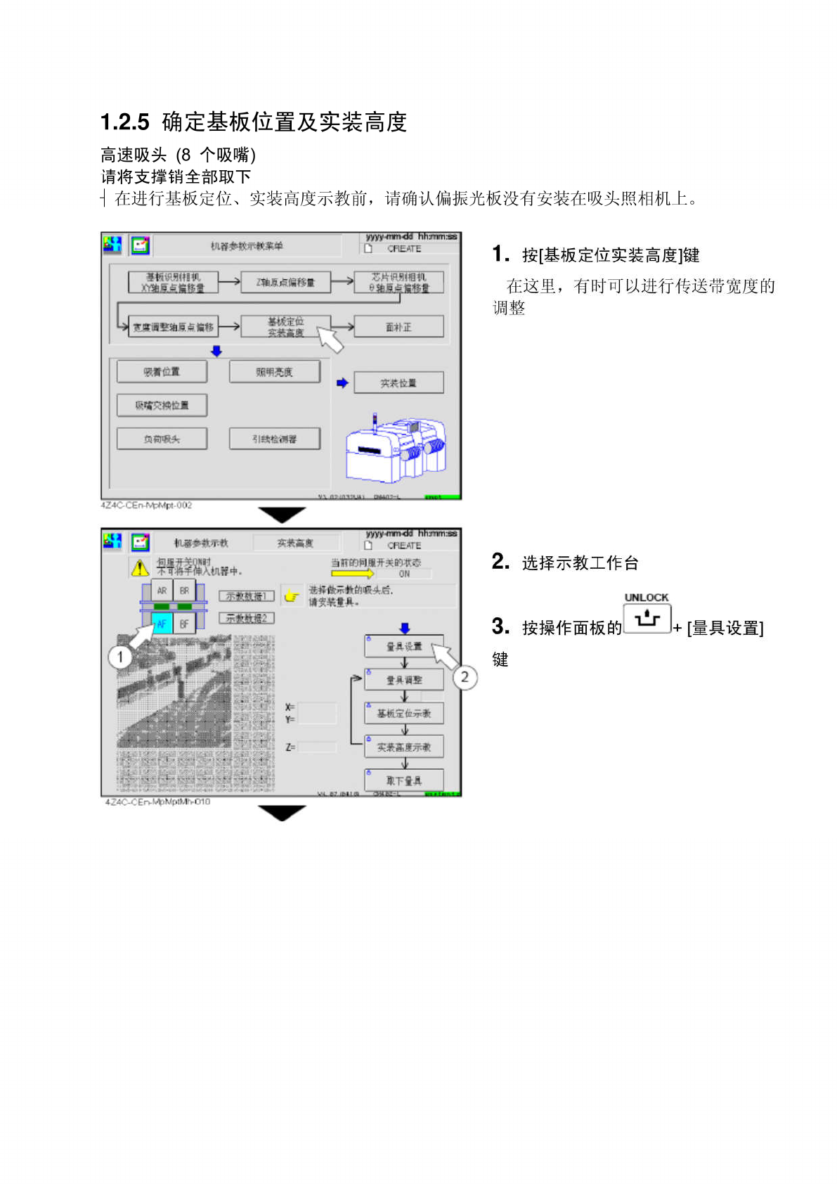 SERVO O F F ( O ) O N ( | ) 4 . 将伺服开关置于 OFF 状态 5 . 打开安全盖 6 . 将吸嘴 ( 130 号 ) 安装在吸嘴位置 3 号 ■ I 多功能吸头时是 1003 号 7 . 关闭安全盖 SERVO 0 F F ( O ) O N ( | ) 8 . 将伺服开关置于 ON 状态 9 . 按 操 作 面 板 的 [ 量 具 调 整 ] 键 吸头退避 , 第 2 实装位置的基板止动器 将处于 ON…