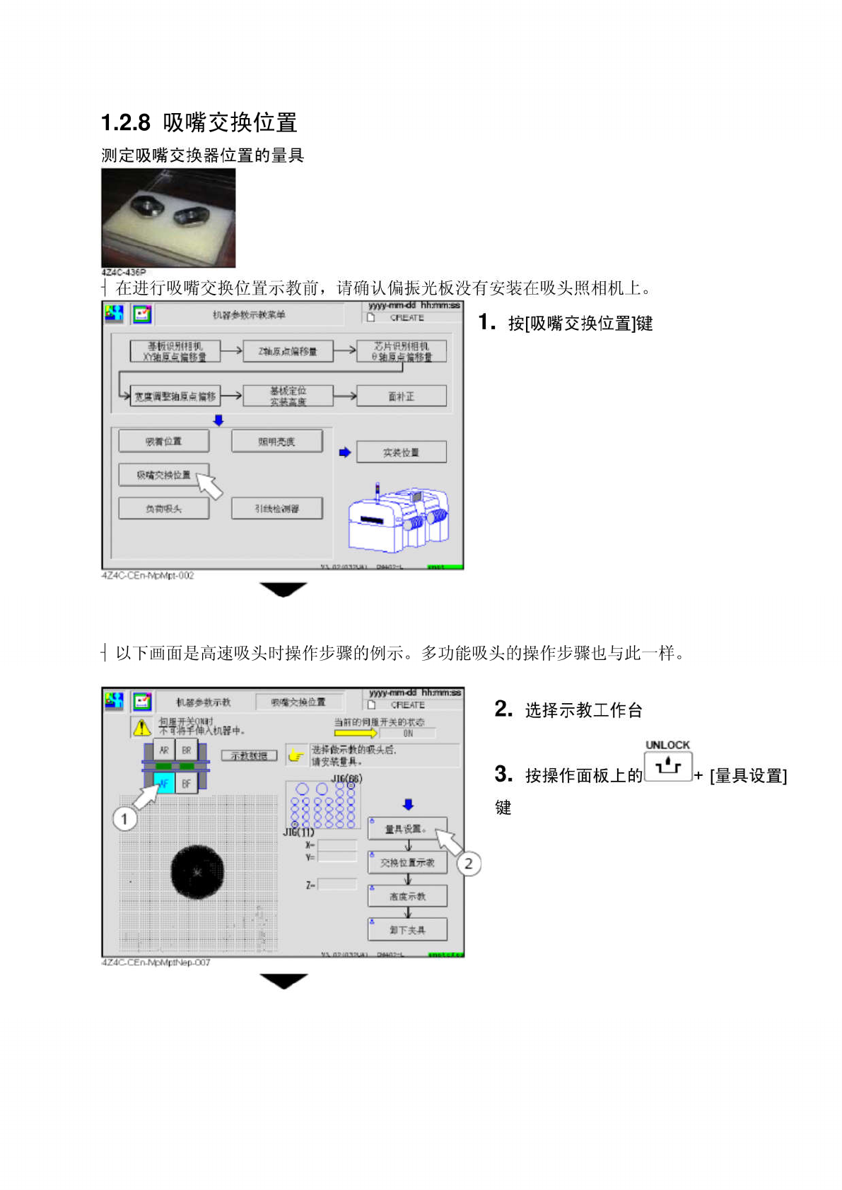 卸下吸嘴和吸嘴交换器位置上的量