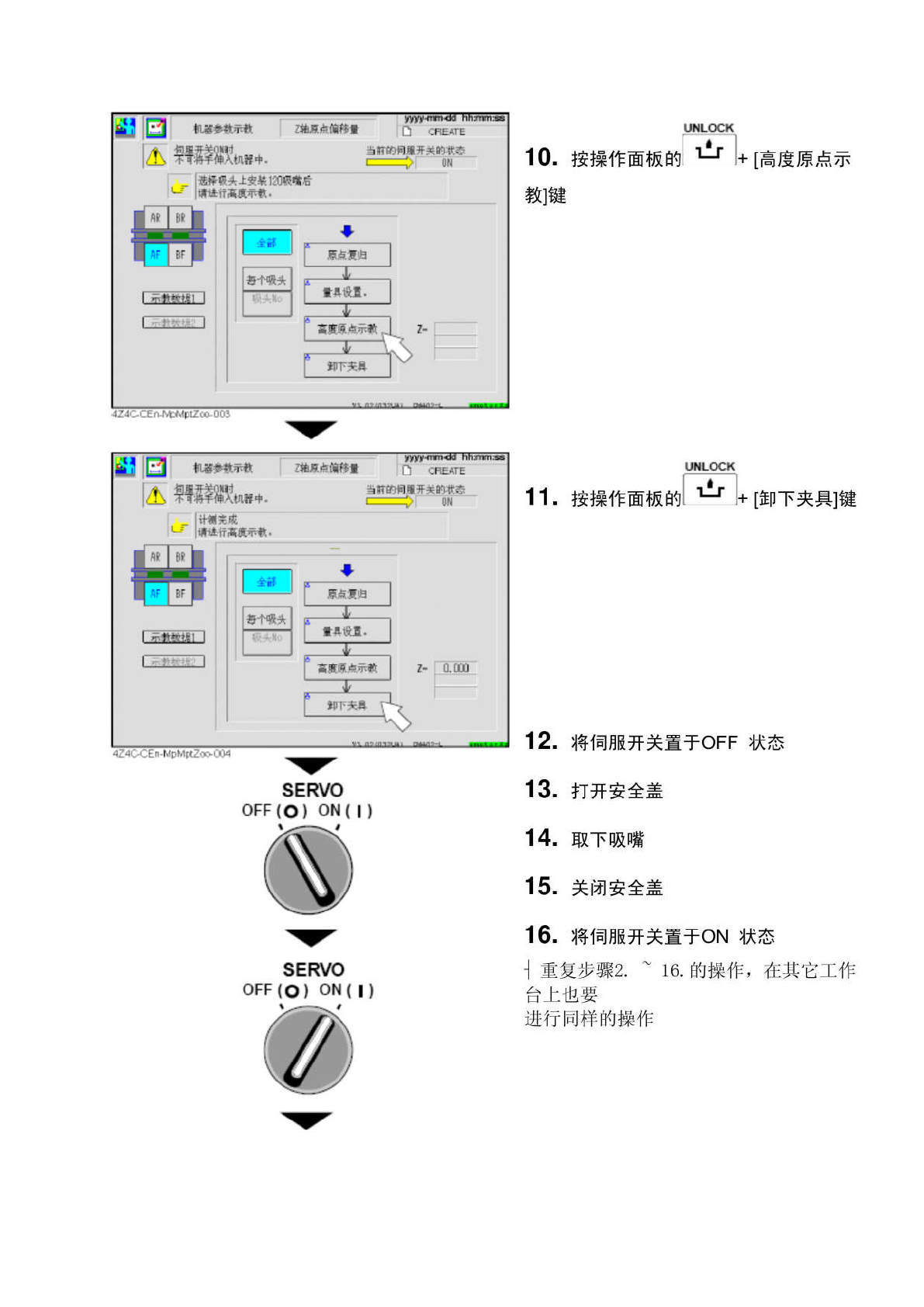 mjR 由曲羚 ft | 4 s 觀歡 开关的欢杏 10 . 按操作面板的 [ 高度原点示 执 》 * . 熹上安 1 汸 《 | LT 教 ] 键 " eTk \ / h > nm ^ H 4 . [ S ® 66 Itt 谨疔 ; w [ 示承 • 按操作面板的 1 & 1 + 开关的 yg 11 . [ 卸下夹具 ] 键 : i 个灌头 曾暴设 i - [ 却 T 夹屣 12 .…