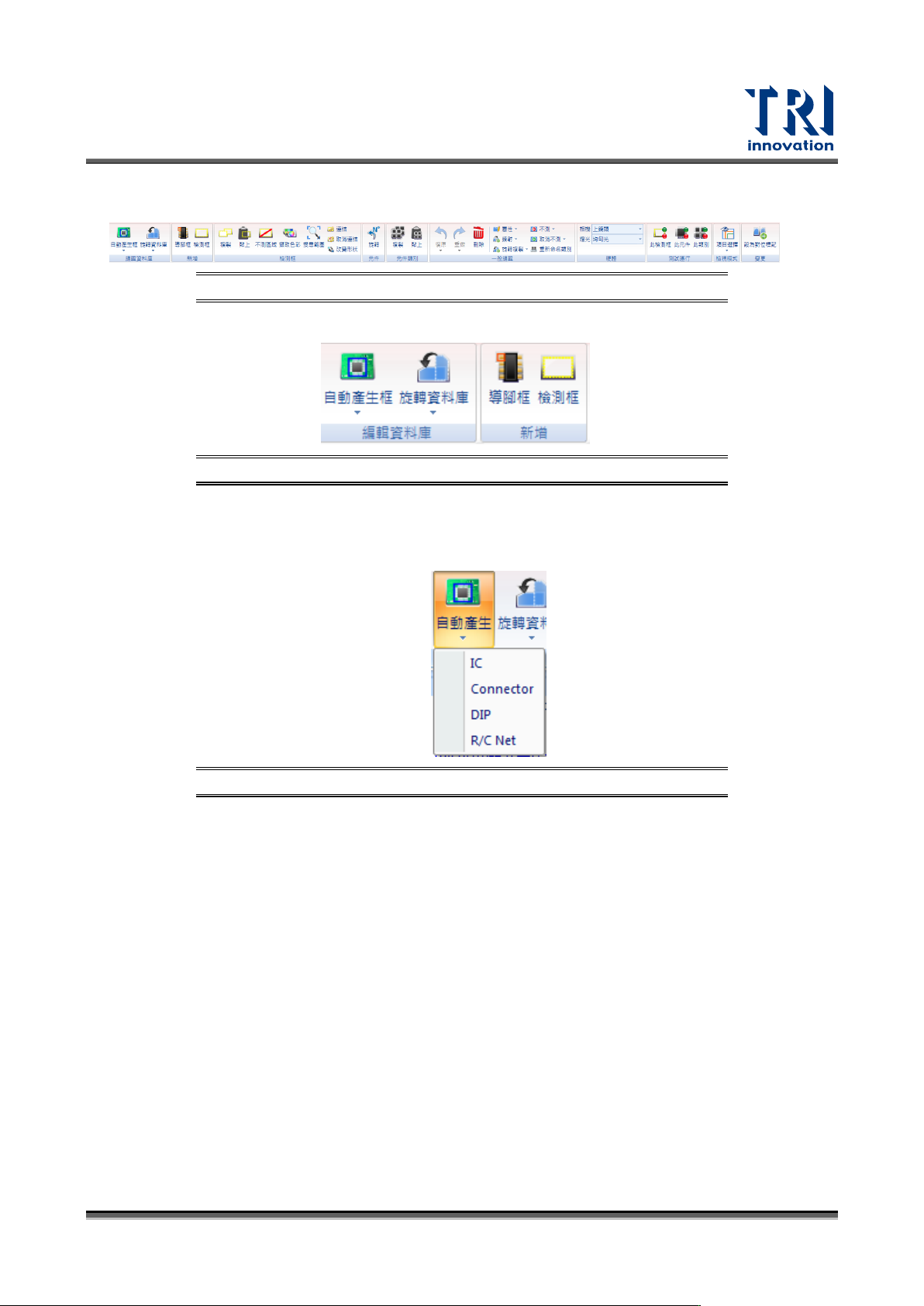 Test Research, Inc. 136 TR7700 SIII Series User G uide – Soft ware 圖 205 : 連結 / 複製對位標記 / 不 良標記 / 條碼設定視 窗 一般編輯 圖 206 :一般編輯 設定視窗 刪除:刪除已選擇的物 件。 不測:設定已選擇的板 子或元件將不進行測試。 取消不測:將不進行測 試的板子或元件恢復進行 測試。 重新命名:重新對所選 擇的元件類別、板…