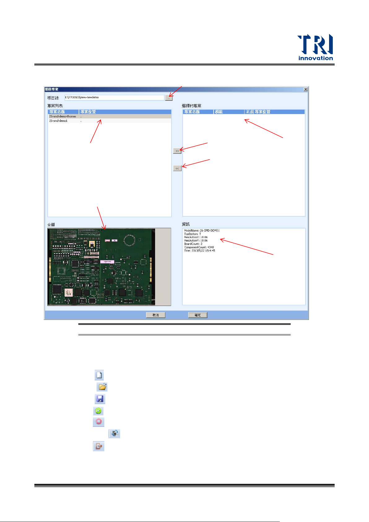 Test Research, Inc. TR7700 SIII Series Us er Guide – Software 97 圖 138 :開啟專案 視窗 − 儲存 :儲存現有的專案。 − 另存新檔: 儲存現有的 專案 到指定的路徑。 快捷工具欄: − 新增 ( ) :新增一個新的 專案 。 − 開啟 ( ) :開啟一個 已存在 的專案。 − 儲存 ( ) :儲存現有的 專案 。 − 測試 ( ) :開始進行專案測 試。 − 停…