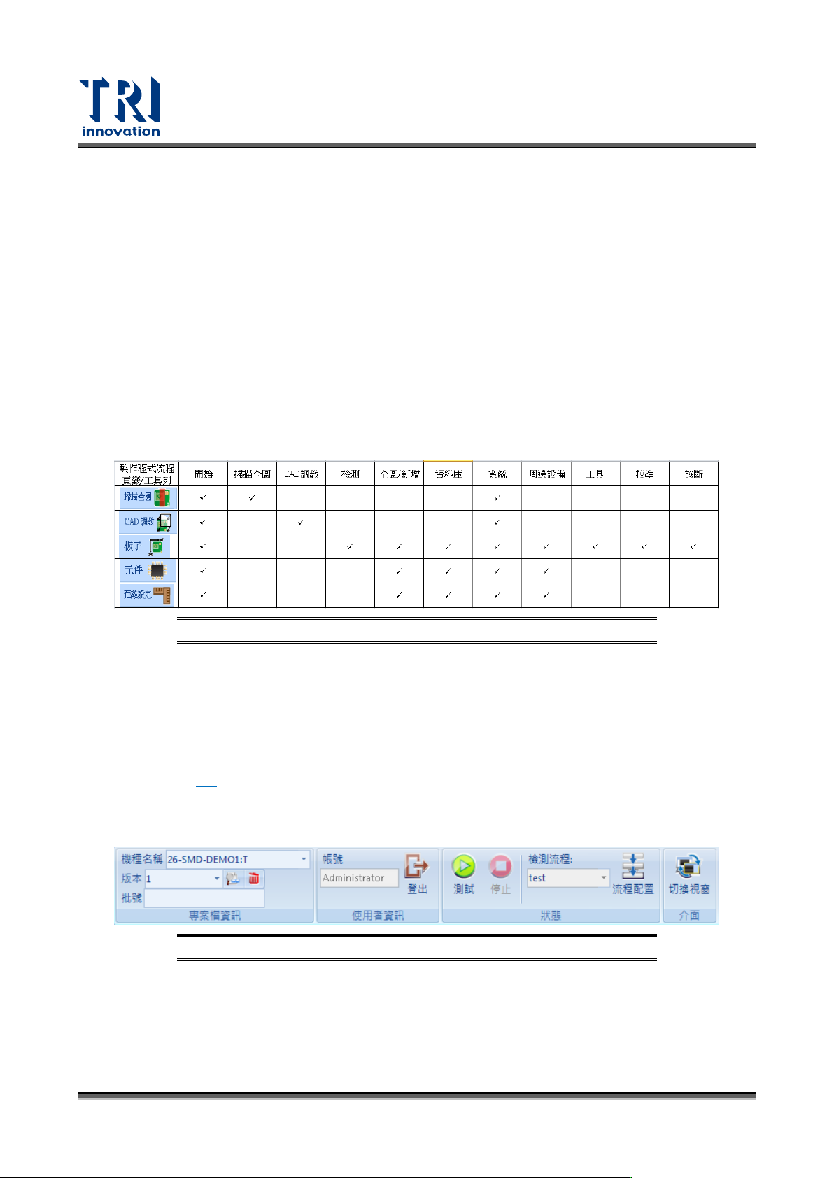 − 切換視窗 ( ):從檢測模式切換到生產模式視窗,詳細的說明請參閱 4。