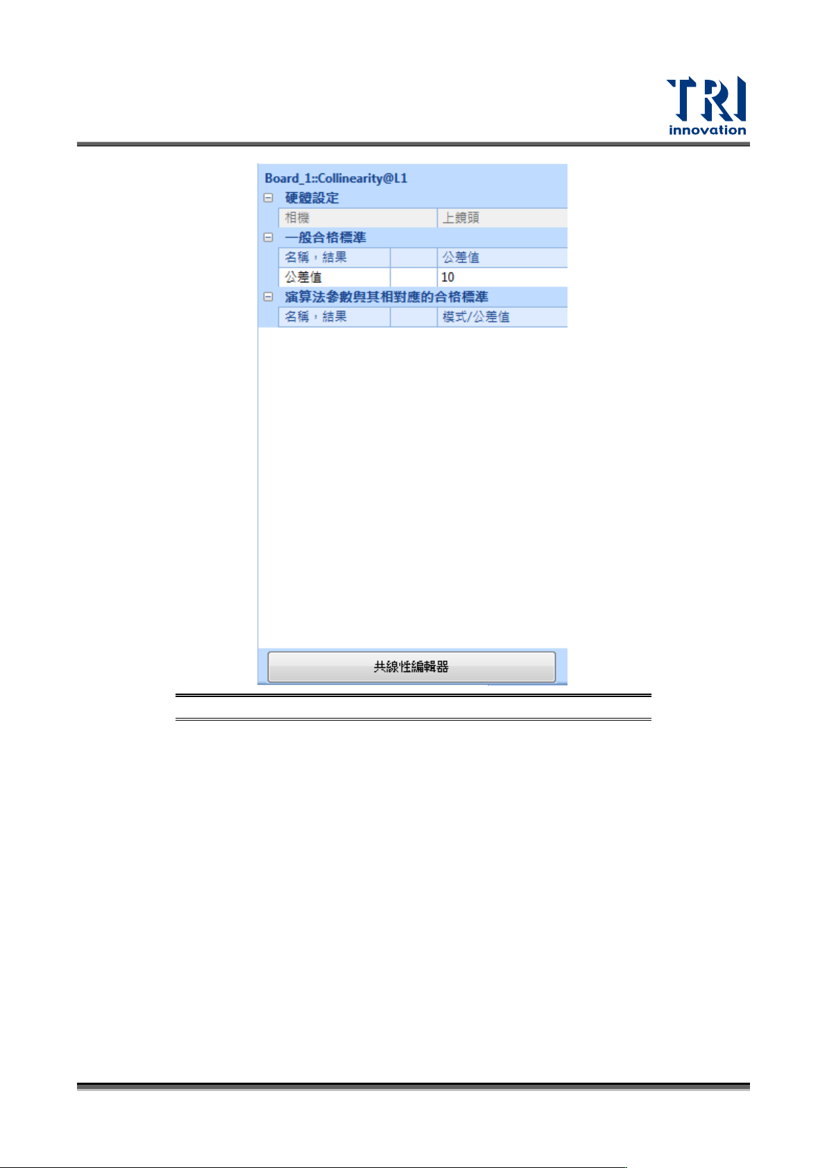 圖 306:共線性量測參數說明