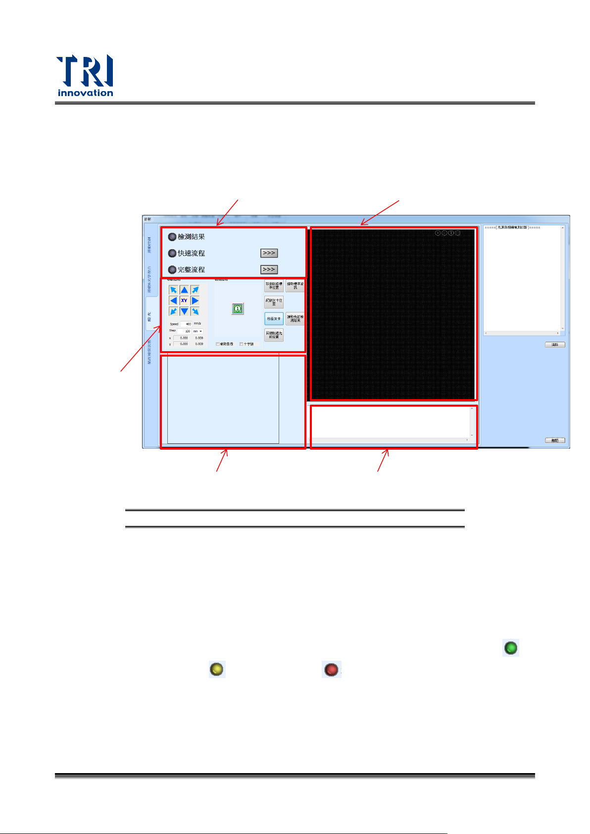 • 檢測結果:依照不同的顏色的燈號來顯示各個流程的檢測結果。通過(Pass)顯示 ,