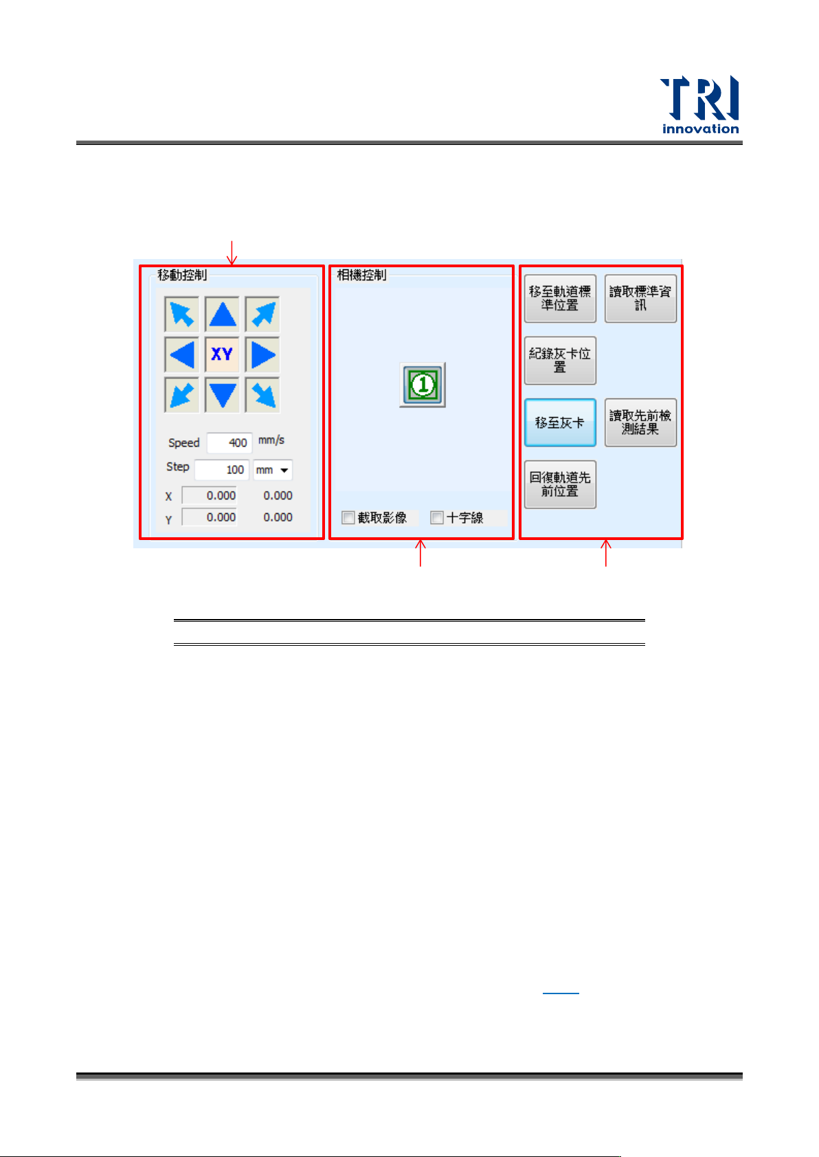 – 擷取影像:觸發 trigger 並在影像顯示區顯示目前鏡頭所在位置的影像。