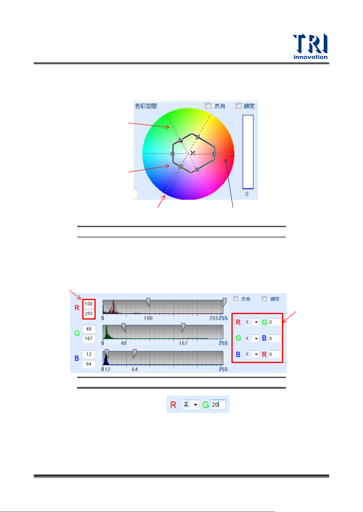 Test Research, Inc. TR7700 SIII Series Us er Guide – Software 45 來放大 / 縮小交集區。 勾選 “ 反向 ” 可 反選色彩 ( 選擇 交集區外的顏色 ) ,而勾選 “ 鎖定 ” 可以固定目前所選取的 顏色區塊。另外,右方的直 條與數字顯示出所濾出色 彩的面 積占擷取圖的比例。 圖 64 :色彩空間 調整區 - 色彩空間圖區 一般使用色彩空間法進 行代料影像處理的檢測框包 …