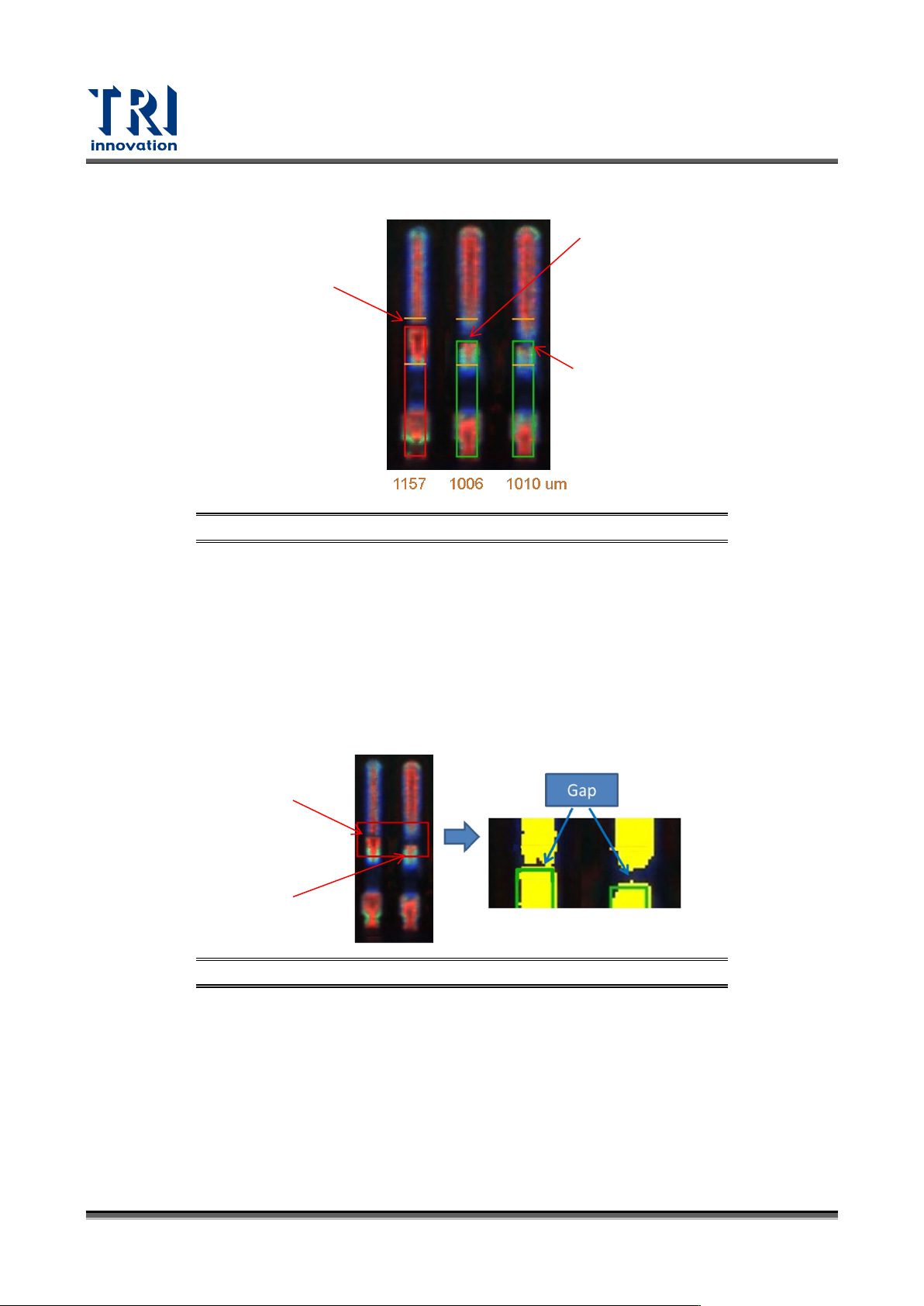 Test Research, Inc. 66 TR7700 SIII Series User G uide – Software 圖 100 : Lead 框進階功能 – 檢查腳長 度 檢查腳邊間隙:適用於 爬錫區域只存在極小間隙差 異的狀況,計算導腳尾終止端附 近微小爬錫間隙,範圍 內有 1 條 pix el 符合下列條件即合格。 − 比率( % ): 設定 間隙的寬度比 ( 所選顏 色寬度 /Lead 框的寬度 ) , 預設為 …