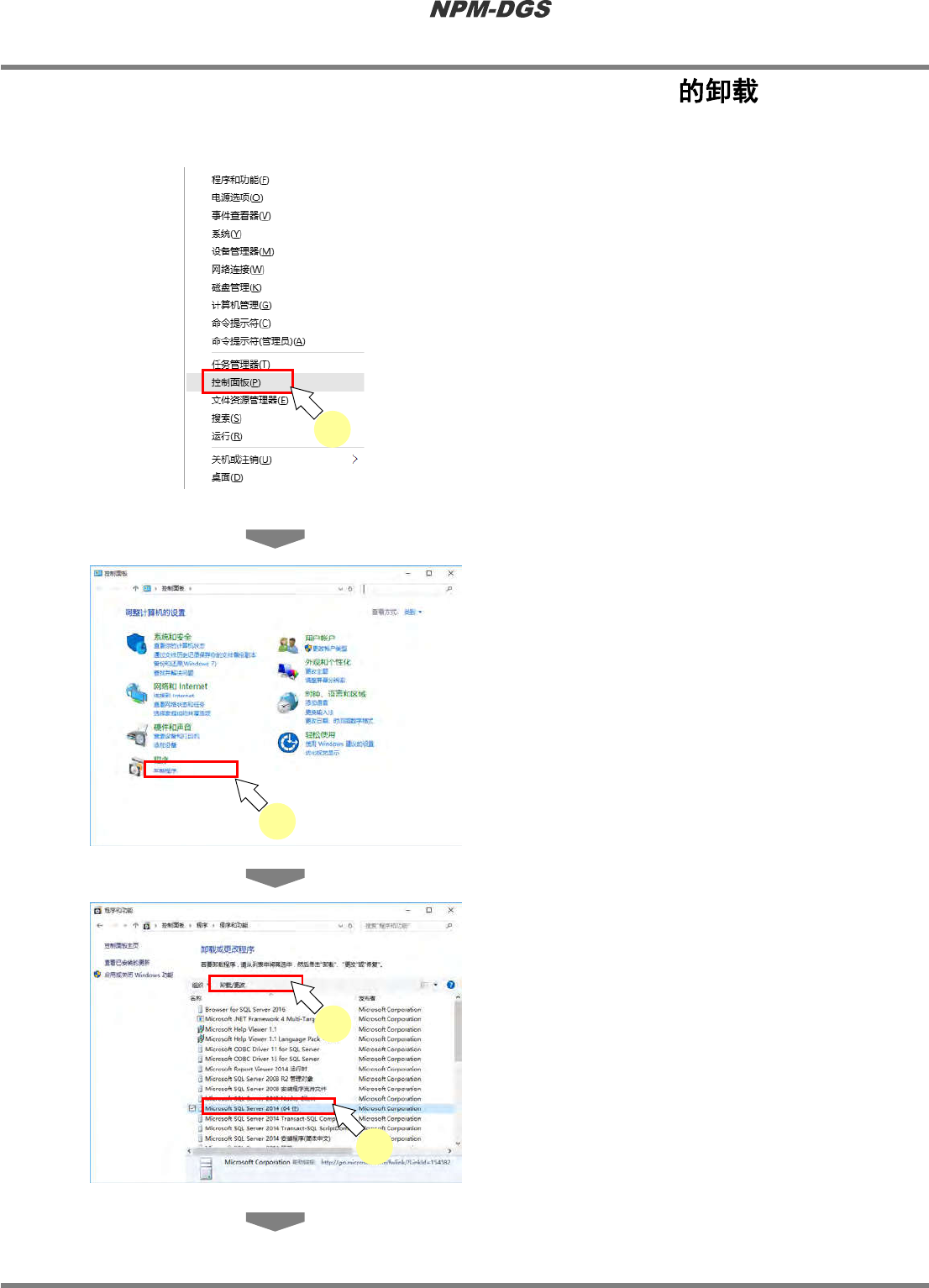 程序手册 2.2DGS 应用程 序的升 级 EJS9AC-MB-02P -22 Page2-125 2.2.7 SQL Ser ver Managemen t Studio Express n SQLServer2014ManagementStudioExpress 的卸载 1 在按 [W indows] 键的同时按 [X] 键, 从显 示的一览中点击 [ 控制面板 ] 。 …